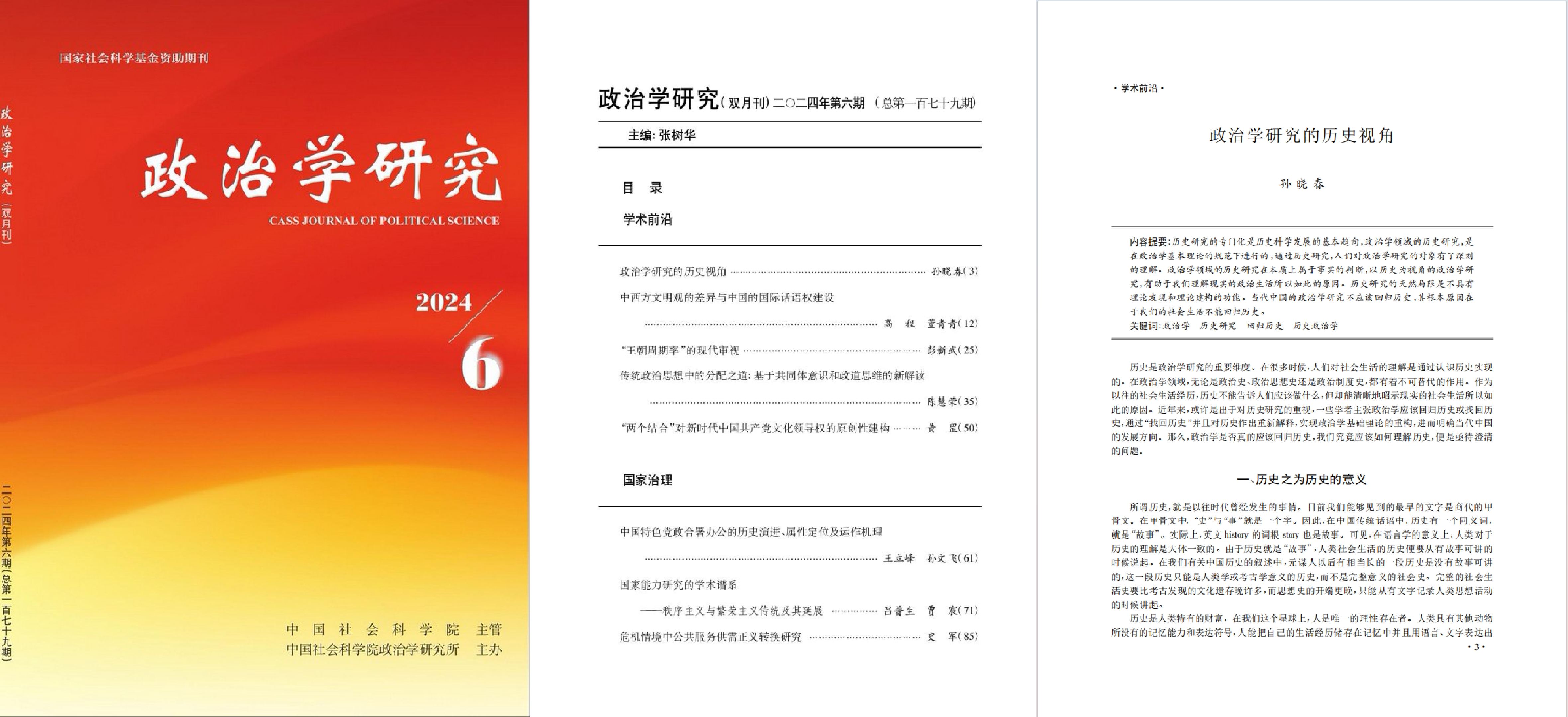 近日,麻豆 孙晓春教授研究成果《政治学研究的历史视角》在《政治学研究》2024年第6期发表。