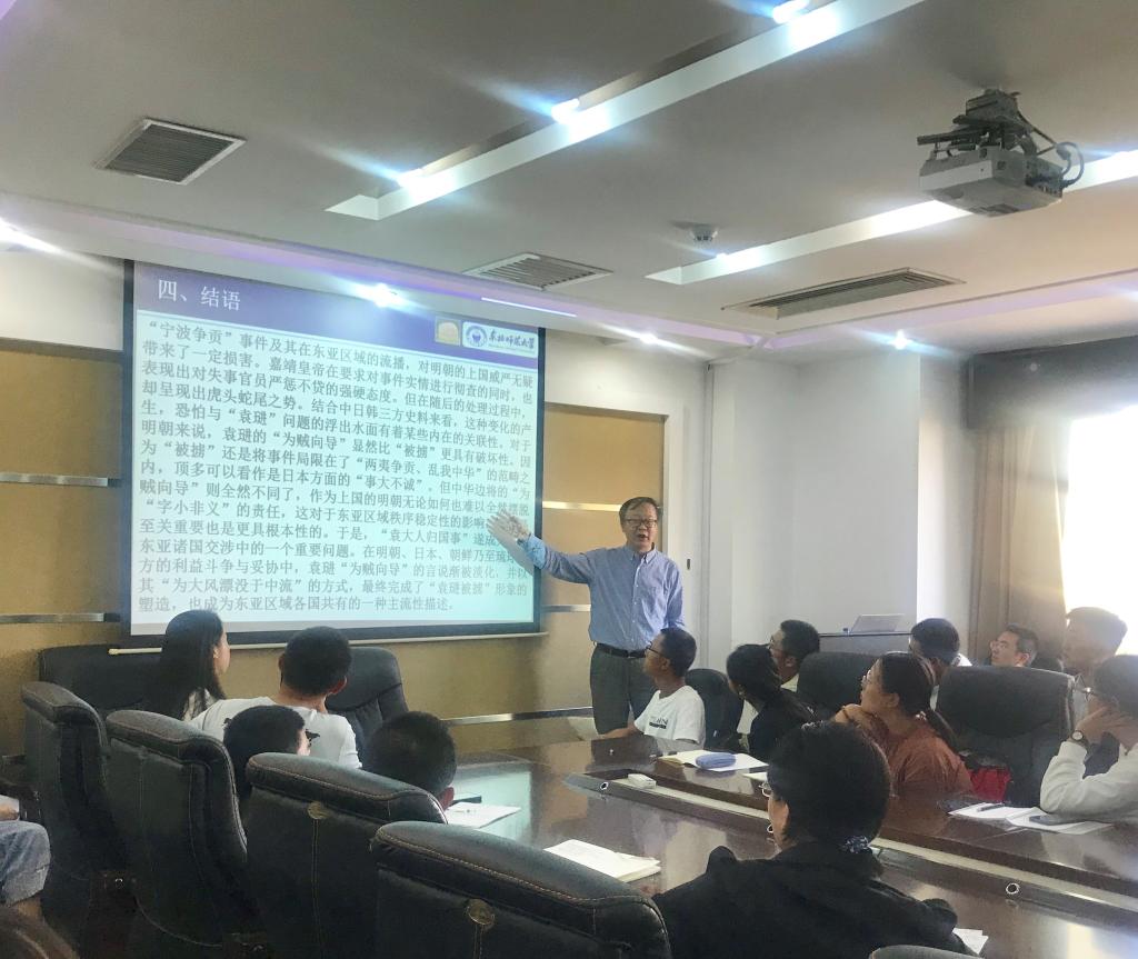 部分师生以及来自其他学院的学生参加此次讲座。本次讲座围绕明朝“宁波争贡事件”的历史瞬间分析了对东亚区域秩序体系的影响,使同学们受益匪浅。