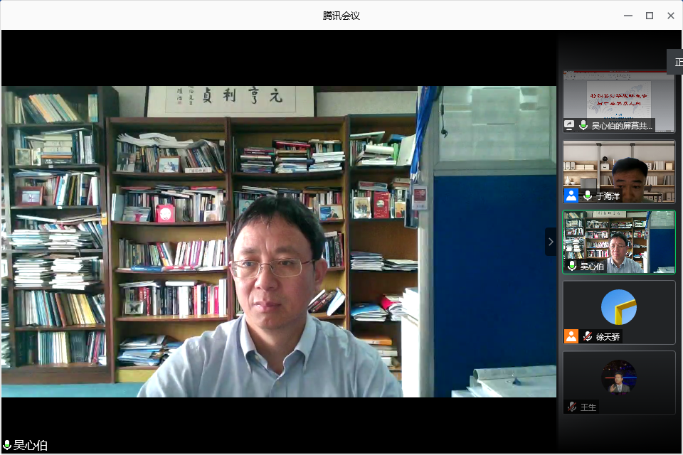 于海洋教授简要介绍了中美关系背景,在此之际邀请吴心伯教授对形势及发展作分析及介绍。吴心伯教授从四个具体问题展开,介绍了中国崛起背景下美国对华政策的两个阶段,指出全面竞争时代的到来,以中美贸易战及疫情冲击为案例详细探讨中美关系。