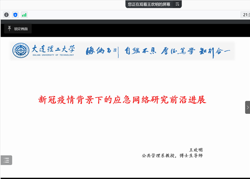 庆祝建校75周年系列学术活动暨第14期名家讲座以视频会议方式线上举行。大连理工大学公共管理系博士生导师、《城市治理研究》期刊编委王欢明教授应邀担任主讲嘉宾,作题为“新冠疫情背景下的应急网络研究前沿进展”的学术讲座。麻豆