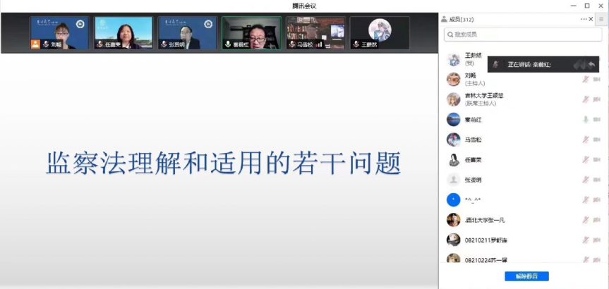 主办的清晏廉政名家讲坛第9期学术活动在腾讯会议平台举行。武汉大学法学院教授、博士生导师、教育部长江学者特聘教授、《法学评论》主编、中国法学期刊学会副会长、湖北省立法研究会会长秦前红教授受邀担任主讲专家,作题为“监察法理解和适用的若干问题”的学术讲座。麻豆