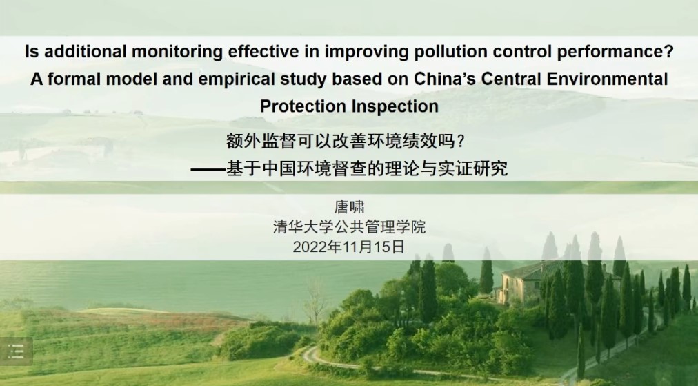 唐啸副教授综合运用理论研究和实证研究方法分析我国作为环保督察的额外监督对改善环境绩效的作用,以历史事件为案例引出在科层制体系下对于额外监督效果的思考。纵观公共管理实践,当委托人对代理人采取绩效活动时往往会引发代理人的博弈行为,其中最频繁的博弈手段就是数据操纵。根据坎贝尔定律,当一个定量目标被运用于决策,其在汇集信息的过程中被操纵和干预的程度就会越大。委托人摆脱或者处理这种困境的方式就是增加额外监督,期望绕开原有数据汇集体系以对抗博弈。随后,唐啸副教授探讨了作为我国额外监督典型案例的环保督察。他认为,对环境的监督会带来两方面的效果,一是推动作为代理人的地方政府作出更多的环保工作努力;二是激发地方政府操纵数据的需求和行为。基于绩效效应、额外监督效应和时间效应的综合影响,唐啸副教授通过数理模型推导和实证检验指出,在政治责任较为明晰的背景下对代理人进行奖惩是十分重要的,带有政治巡察意味的中国环保督察既能促进地方政府增加环保工作的努力程度,又会增加其在环保领域数据操纵的博弈行为。最后,唐啸副教授强调,目前政府不仅要破除绩效管理万能论,也要破除额外监督万能论,额外监督在不同的领域、不同的情形下呈现的效果是不同的,作为第三方监督的额外监督会带来一系列复杂的效应,公共管理的决策者应该从更系统的角度综合考虑。