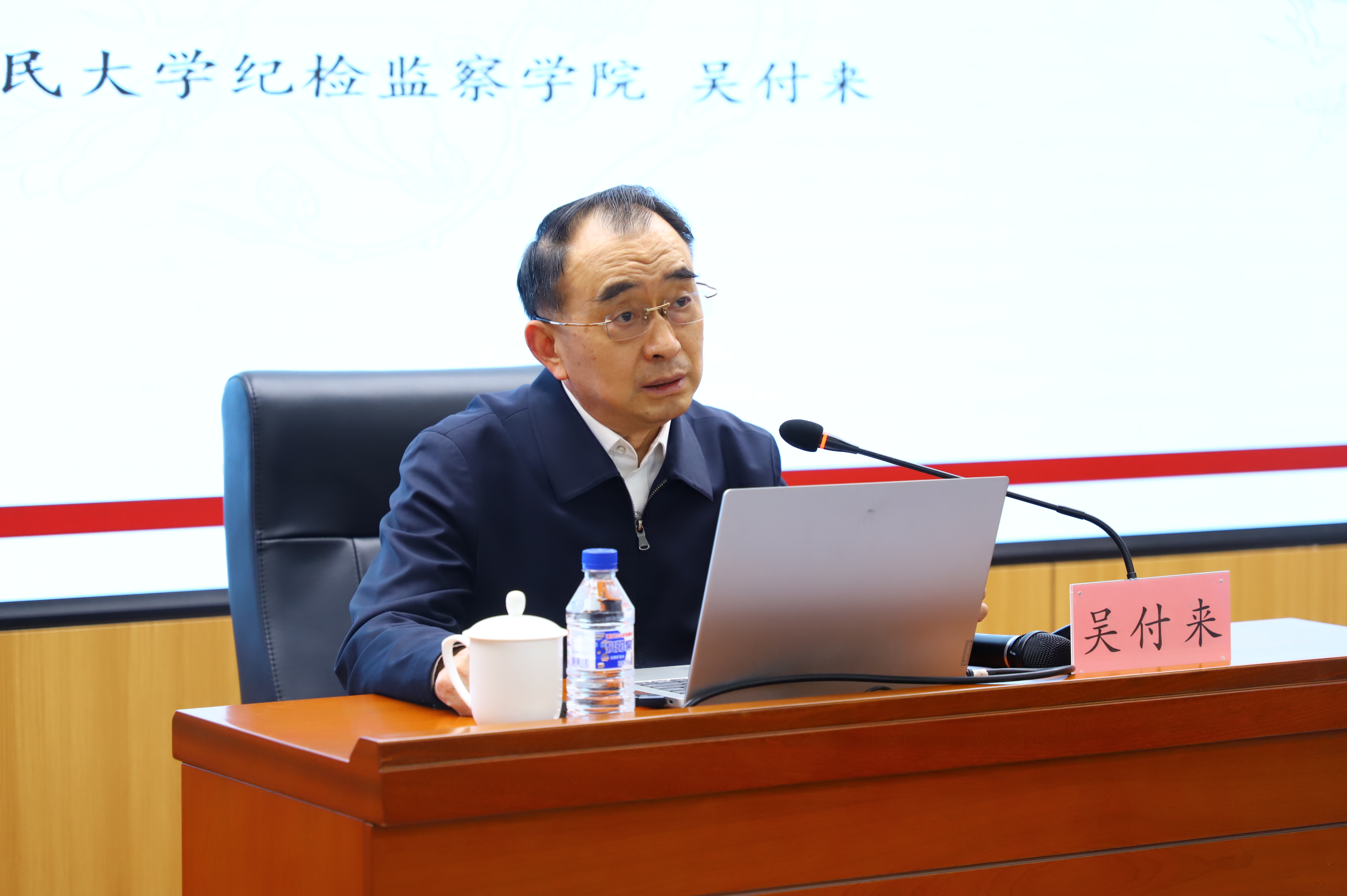 哲学社会科学学术讲座(总第1275场)暨清晏廉政名家讲坛(第13期)在东荣大厦B102报告厅成功举办。国务院学位委员会纪检监察学学科评议组成员、中国人民大学原党委副书记兼纪委书记、纪检监察学院学术委员会主任吴付来教授受邀作题为《深学细悟习近平总书记关于党的自我革命的重要思想》的学术讲座。麻豆