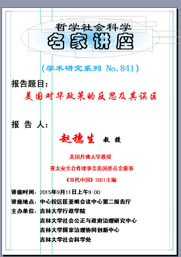 【预告】哲学社会科学名家讲座(第841场)--美国对华政策的反思及其误区
