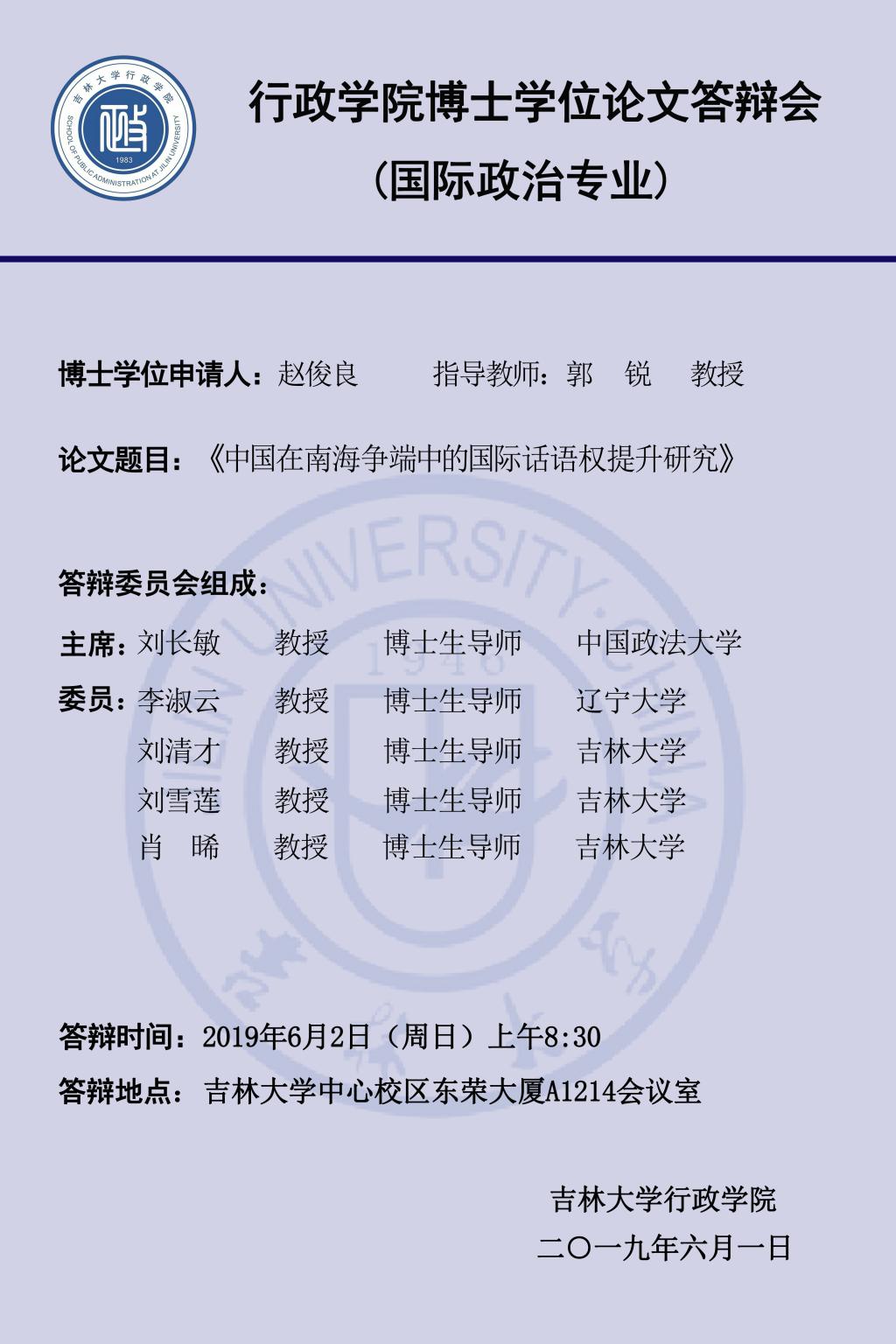 答辩学生:桑溥、王端、赵俊良(答辩顺序以导师姓氏笔画为序,同一导师名下学生按姓氏笔画为序)