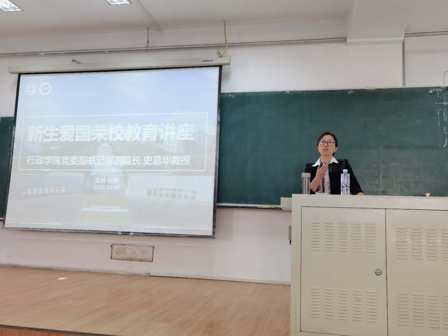 党委副书记兼副院长史慕华教授在中心校区第三教学楼进行了题为“新生爱国荣校”的教育讲座,麻豆