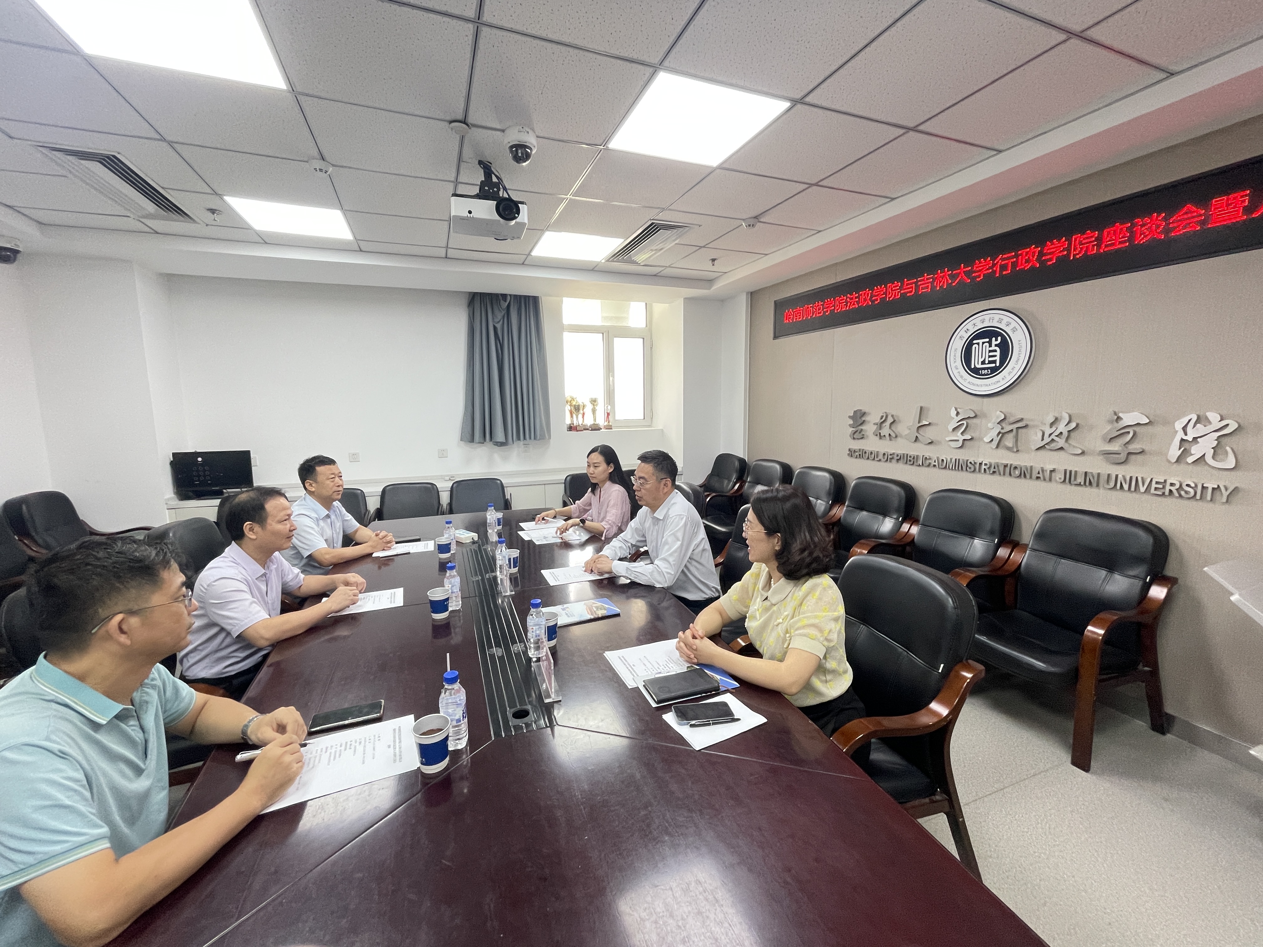 会议伊始,陈希贵对刘鑫淼一行来访表示诚挚的欢迎,并就学院历史、学科发展、师资队伍、专业设置、招生规模等情况作了详细的介绍。刘鑫淼针对岭南师范学院法政学院的学校历史、师资力量、学生培养等进行了介绍,并对高层次人才引进的招聘培养政策展开了详细的说明,希望未来能有更多的吉大高层次人才能到岭南师范学院工作。随后,双方就学科建设、人才培养等问题进行了讨论交流,并就双方将来进一步交流合作达成共识。
