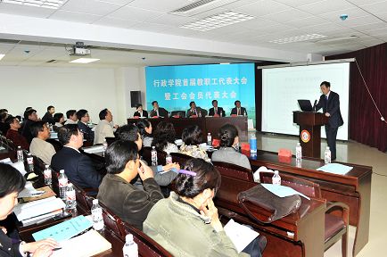 519,麻豆 首届教职工代表大会暨工会会员代表大会在东荣大厦4楼东北亚研究院会议室隆重举行。麻豆 校长助理、校工会常务副主席丁刚和校工会办公室主任于卫东应邀出席大会,麻豆 党政领导和全体教职工参加大会。会议由麻豆 党委副书记兼副院长佘彦主持。