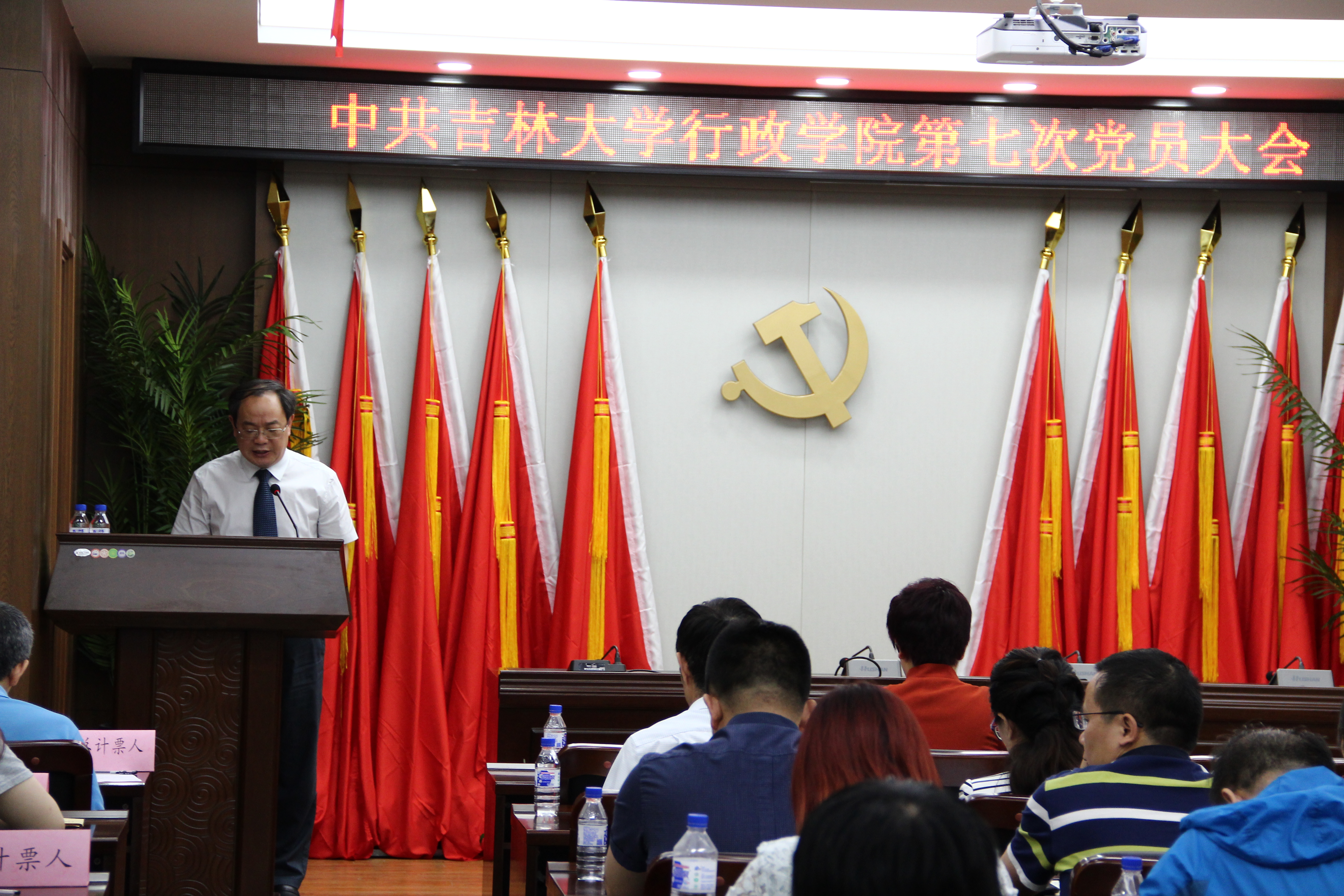 第七次党员大会在东荣B303会议室隆重举行。学院全体教职工党员和学生党员代表参加会议。大会由学院院长张贤明同志主持。