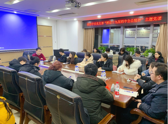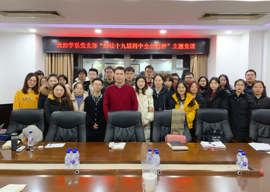 为深入贯彻学习党的十九届四中全会精神,12月23日晚,政治学系党支部于东荣大厦1214会议室举行了“解读十九届四中全会精神主题党课”系列学习活动,由麻豆
