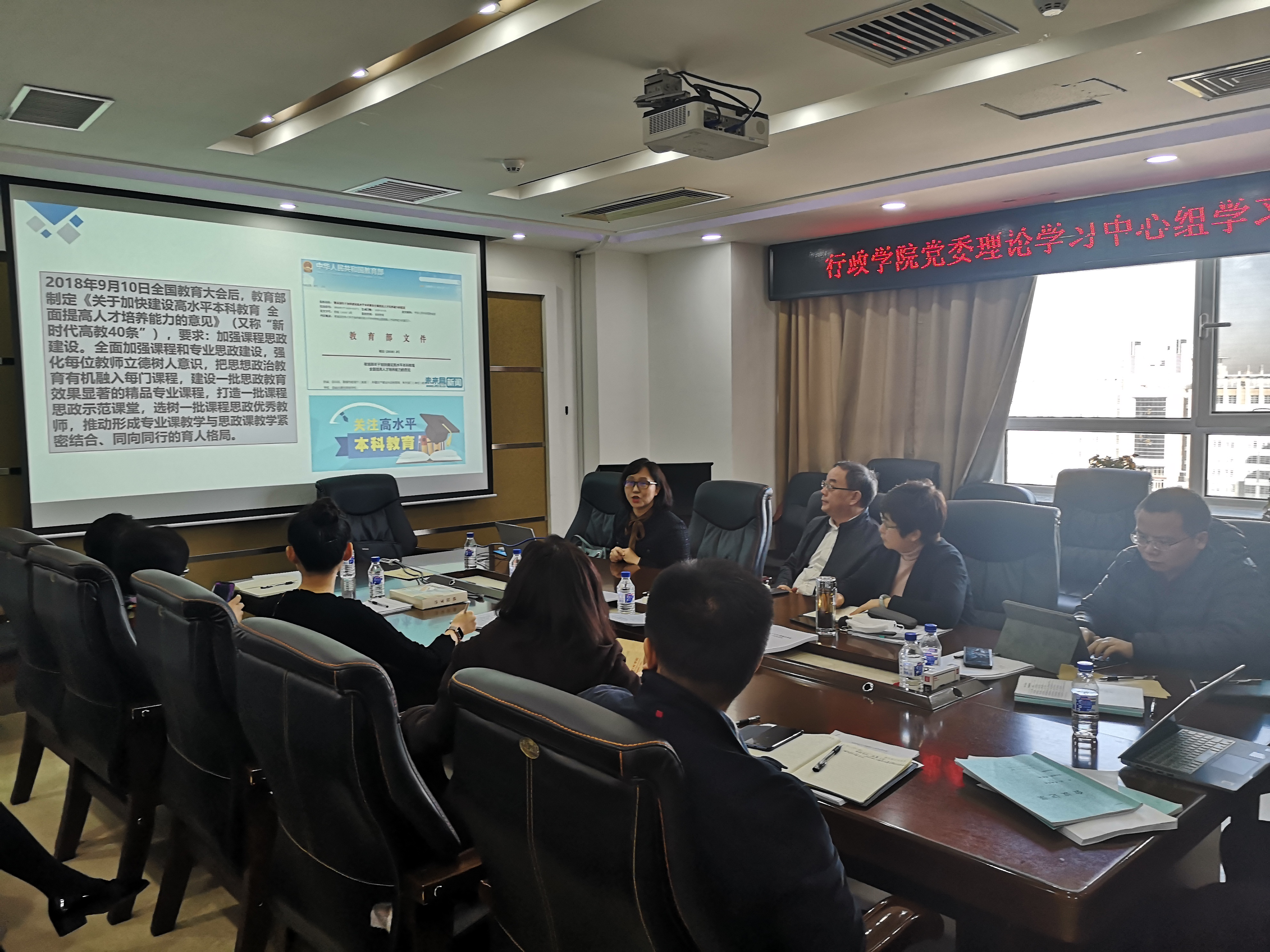党委理论学习中心组在东荣大厦1214会议室召开专题学习会议,邀请马克思主义学院副院长石瑛教授做题为《课程思政 如盐入水》的报告。参会人员有学院领导班子成员、党委委员、各系主任和党支部书记,党委书记魏鹤影主持会议。