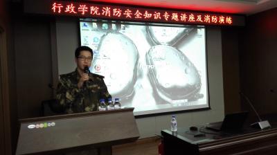 消防安全管理实施细则》的要点进行了解读,对颁布实施的意义进行了说明。他结合近年学校发生的火灾实例深入讲解了单位消防管理的层级责任区分。强调坚持“管行业必须管安全、管业务必须管安全、管生产经营必须管安全”的原则。讲解了防火灭火的基本知识、火场逃生的基本方法以及灭火器的使用等消防安全常识。他还结合自己的工作,分享了自己对做好消防工作的经验体会。播放的火灾案例教学片,也让参会的师生深深的感触到水火无情的警言,给全体师生上了生动的一课,也极大的增强了师生的安全防卫及消防安全意识、提高了火灾发生时的自救自卫能力。