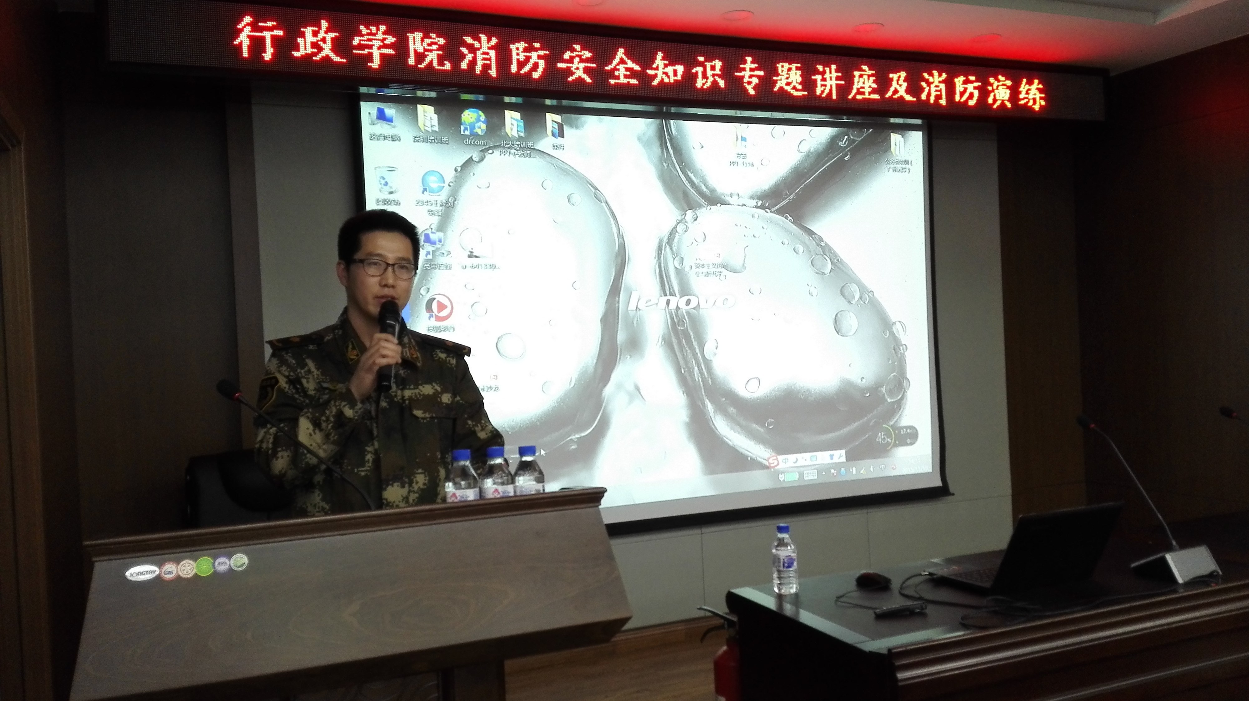 保卫处消防科周中平科长主讲,党委副书记常有余、副书记史慕华、副院长范斌以及近40名师生参与了此次活动。