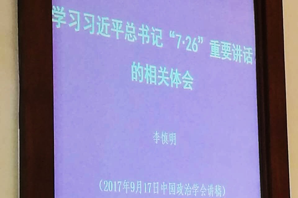 开幕式后,中国政治学会会长李慎明做了题为《学习习近平总书记“7•26”重要讲话的相关体会》的大会主题发言。他指出,在新的形势下,诸多理论和实践问题呼唤政治学的创新和发展,习近平总书记的重视和指导为中国特色哲学社会科学发展指明了方向,政治学学者们要继续学习习近平总书记系列重要讲话精神,不断推进中国特色政治学的创新发展。