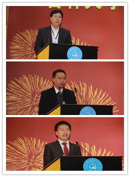 取得的斐然成就表示热烈的祝贺,对学院的教育培养表示衷心感谢,他抚今追昔,回忆大学的青葱岁月,缅怀已故恩师王惠岩先生,表示不辜负学校的培养和老师的教诲,努力为国家作贡献,为母校争光。