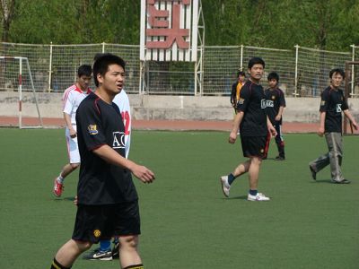 队员禁区内犯规,对方点球得分。在比分落后的情况下,面对劲敌,我们的队员表现出了非常顽强的精神。他们积极拼抢,配合默契,防守严密而牢固,并组织了几次比较有威胁的进攻。下半场的比赛更是困难。队员们的心理压力和体力消耗都更大了。但他们咬紧牙关,奋力拼搏;特别是为本场比赛作出巨大贡献的05级队员布仁巴特同学在拼抢中受伤后仍然坚持继续比赛,让在场的每一个人都为之感动。比赛结束前三分钟,对方又进一球,我们最终以0:2负于商学院。