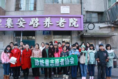 政能量社团志愿者们在社长王晓燕(2013级)的带领下,前往长春市集安路敬老院看望老人。