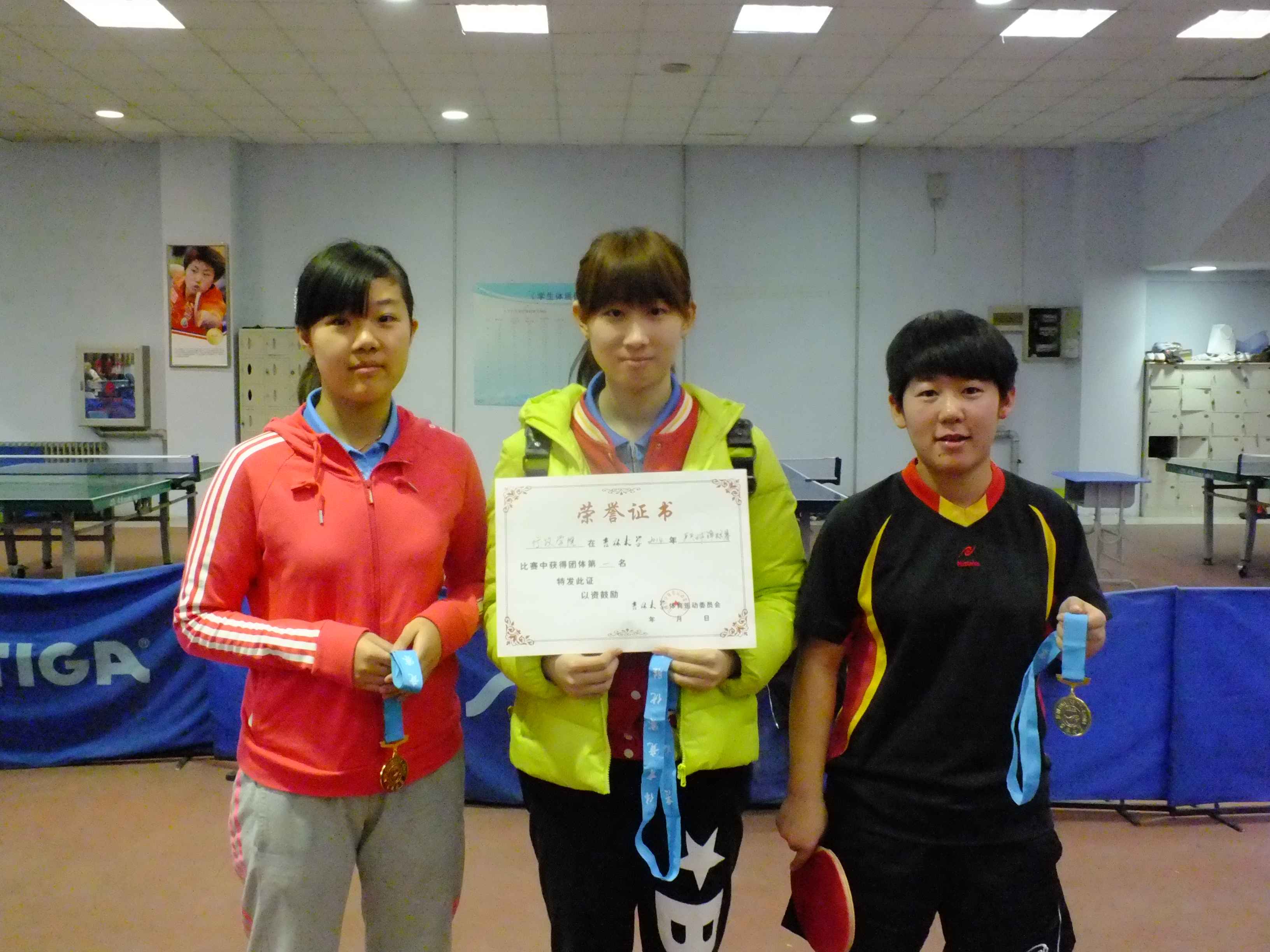 代表队派出八名本科生参赛。郭丝雨(2014级)、黄蓉(2014级)、李若茜(2013级)、张捷羚(2013级)组成的女团代表队实力超群,在赛场上沉着冷静,以大比分领先轻松晋级四强,最终在决赛中以团体比分3:0的优异成绩力压地科代表队夺得冠军。在第二天的单打比赛中,麻豆