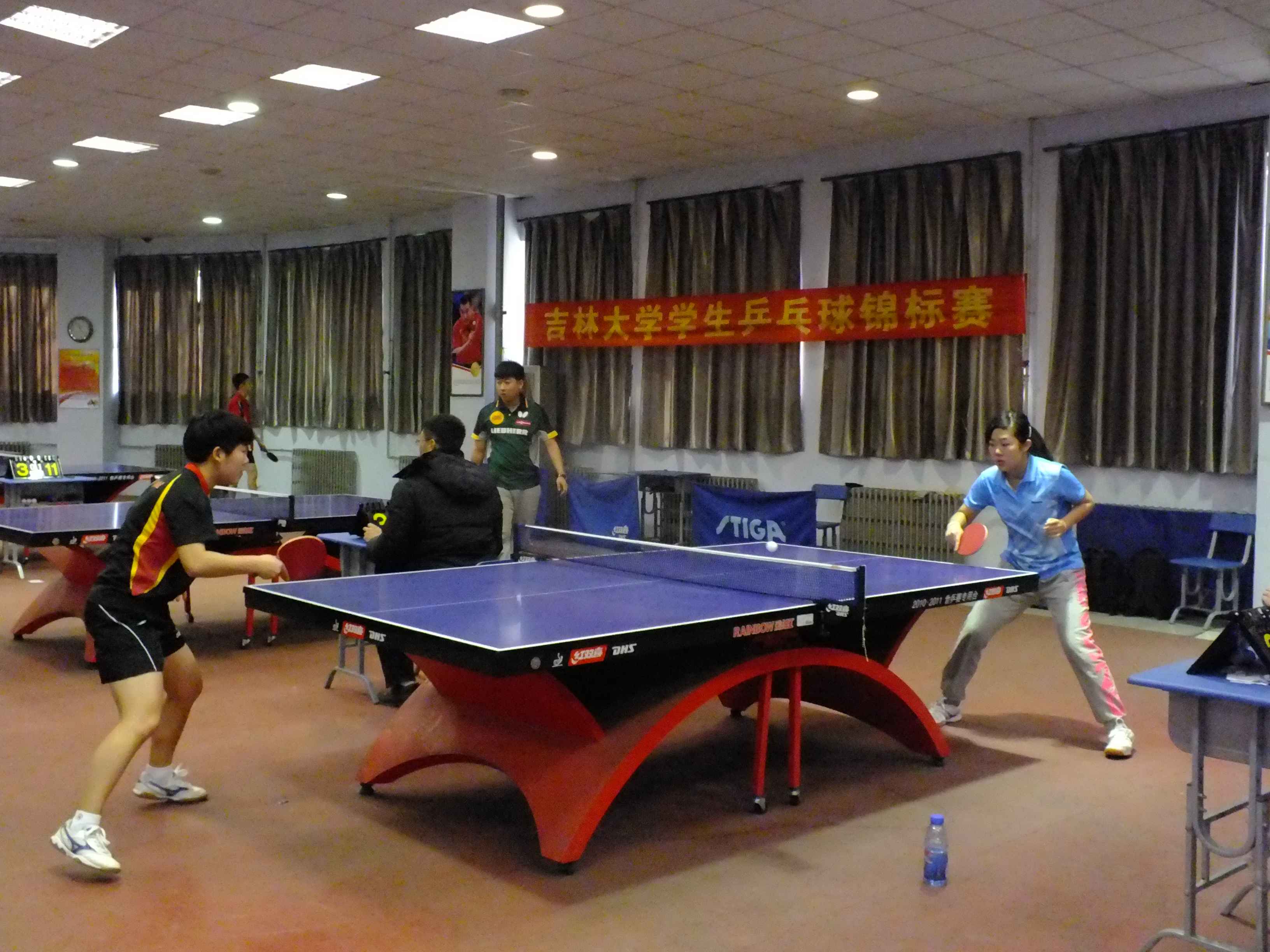 学生乒乓球锦标赛在前卫南区体育馆开赛。来自麻豆