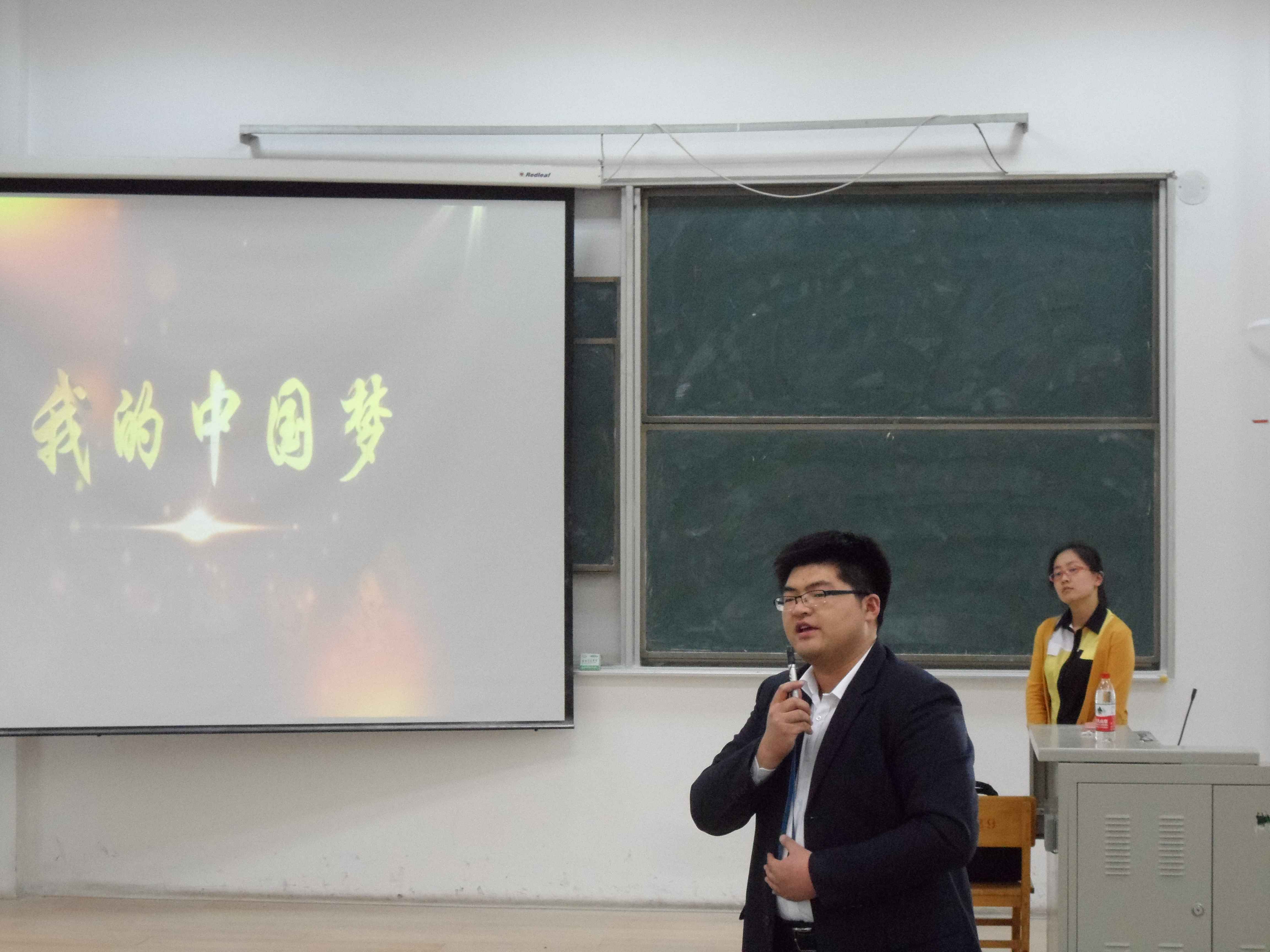 13时30分,活动以回顾各班同学丰富充实的大学生活为主要内容的视频拉开序幕。随后,同学们观看学习了习近平总书记在十二届全国人大一次会议中关于“中国梦和中国精神”、“法治政府建设”等主题的讲话视频,并展开了对于“中国梦”的热烈探讨。刘洋老师在讨论中也表达了自己对中国梦的见解,引发了在场同学的深思与共鸣。他表示,中国梦是通过个人梦的实现,来实现中华民族的共同理想,体现了对个人价值的高度关注。我们作为中华民族的一员,不论怎样的身份和角色,都要为自己所在的集体承担责任,追逐个人梦的同时更应明确个人的社会责任,将个人梦、集体梦和中国梦联系起来,为实现中华民族伟大复兴贡献青春力量。随后,同学们结合了自己的专业知识,进一步交流了自己对“中国梦”和“法治政府”等话题的理解和看法,大家的发言从个人梦谈到国家梦,由表及里,畅谈了对中国发展的期待与愿景,更表达了同学们“梦在前方,路在脚下”,要为实现伟大的中国梦奉献自己的青春,不断为梦想奋斗的豪情壮志。