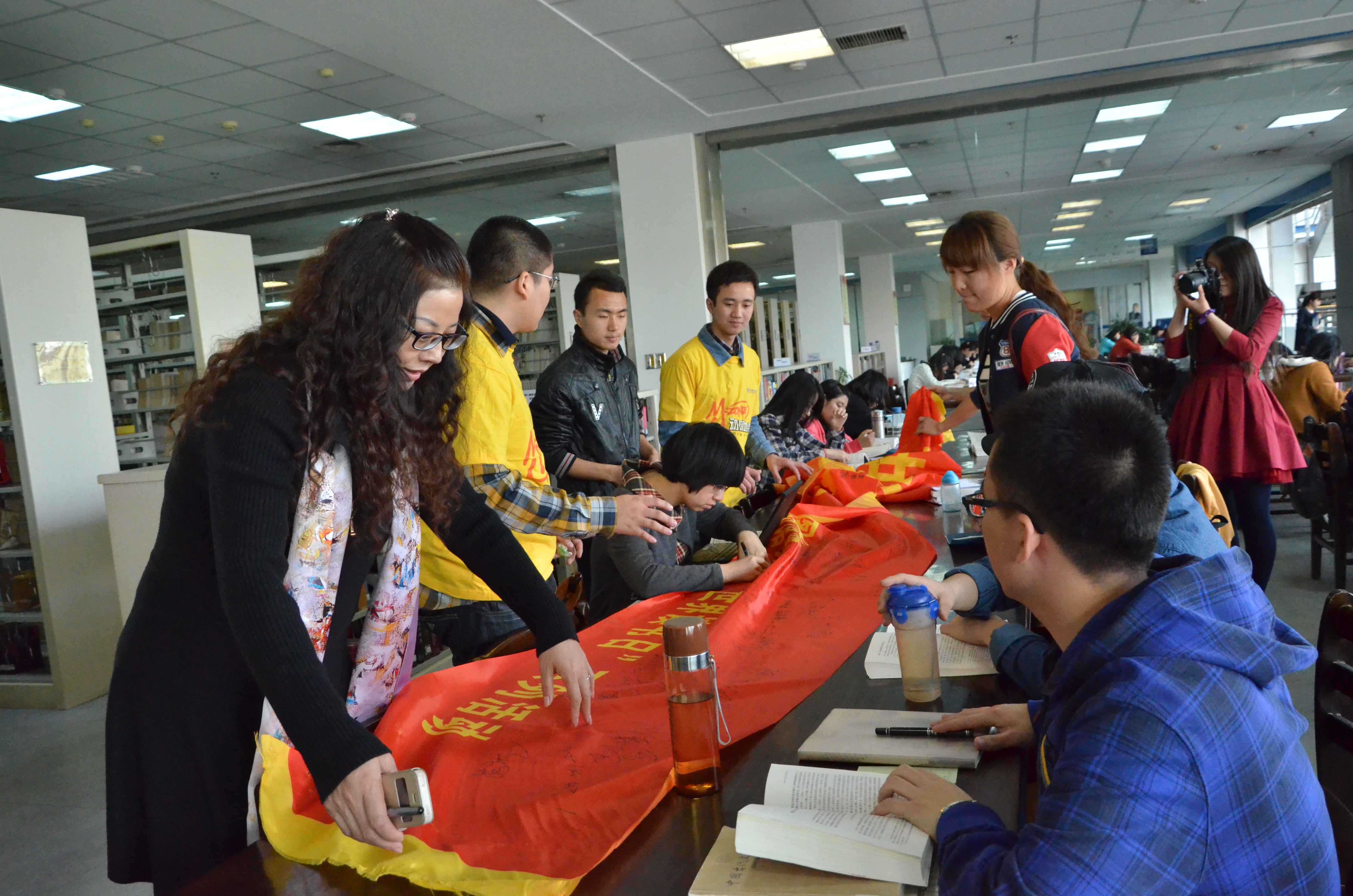 在活动过程中,首先举行了大型条幅签名仪式,以此来号召广大师生重拾阅读精神。图书馆的读者们在志愿者的组织下,纷纷在条幅上签上自己的名字。随后,图书馆工作人员带领志愿者展开图书修补工作,志愿者认真学习修补图书的方法和技巧,并指导志愿者们亲手修补图书。工作人员向志愿者讲解古籍收藏与保存的相关知识,并介绍了图书修补工作的注意事项,活动得到良好反馈,产生广泛影响。此外,一些志愿者在藏书馆帮助老师整理书籍、上架补架,整个过程持续了近两个小时。