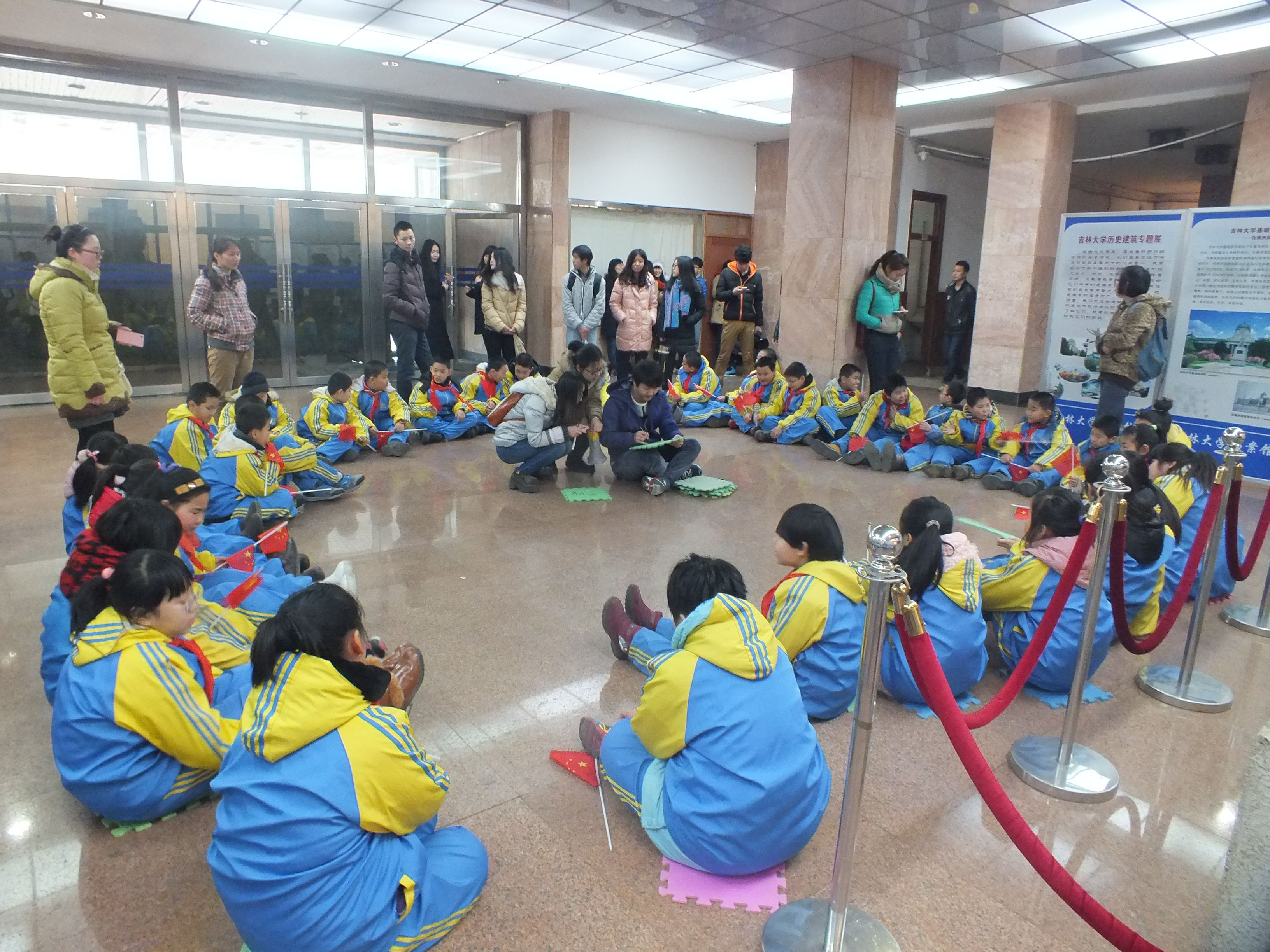 081201班班长滕亮主持,包括感悟吉大校史、素质拓展、品尝吉大美食、浇灌梦想等板块。上午9时许,西安小学师生一行从学校中心校区东门步行游览至校史馆。在校史馆简短的欢迎仪式上,麻豆