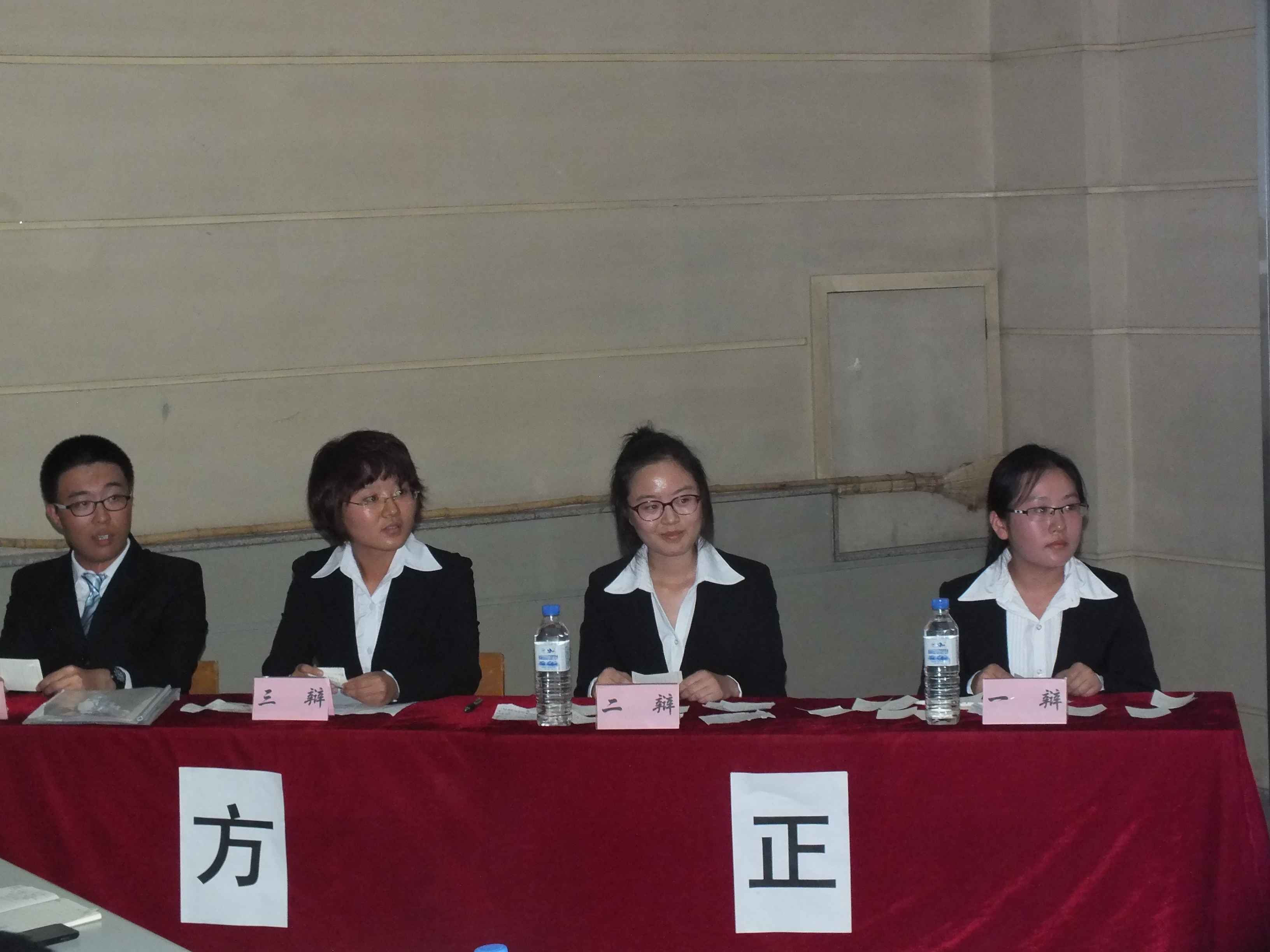初赛分两场进行,辩手们就“中国贫富两级分化政府和市场哪个负主要责任”及“公务员高薪能不能养廉”两个辩题展开了两场激烈的辩论。