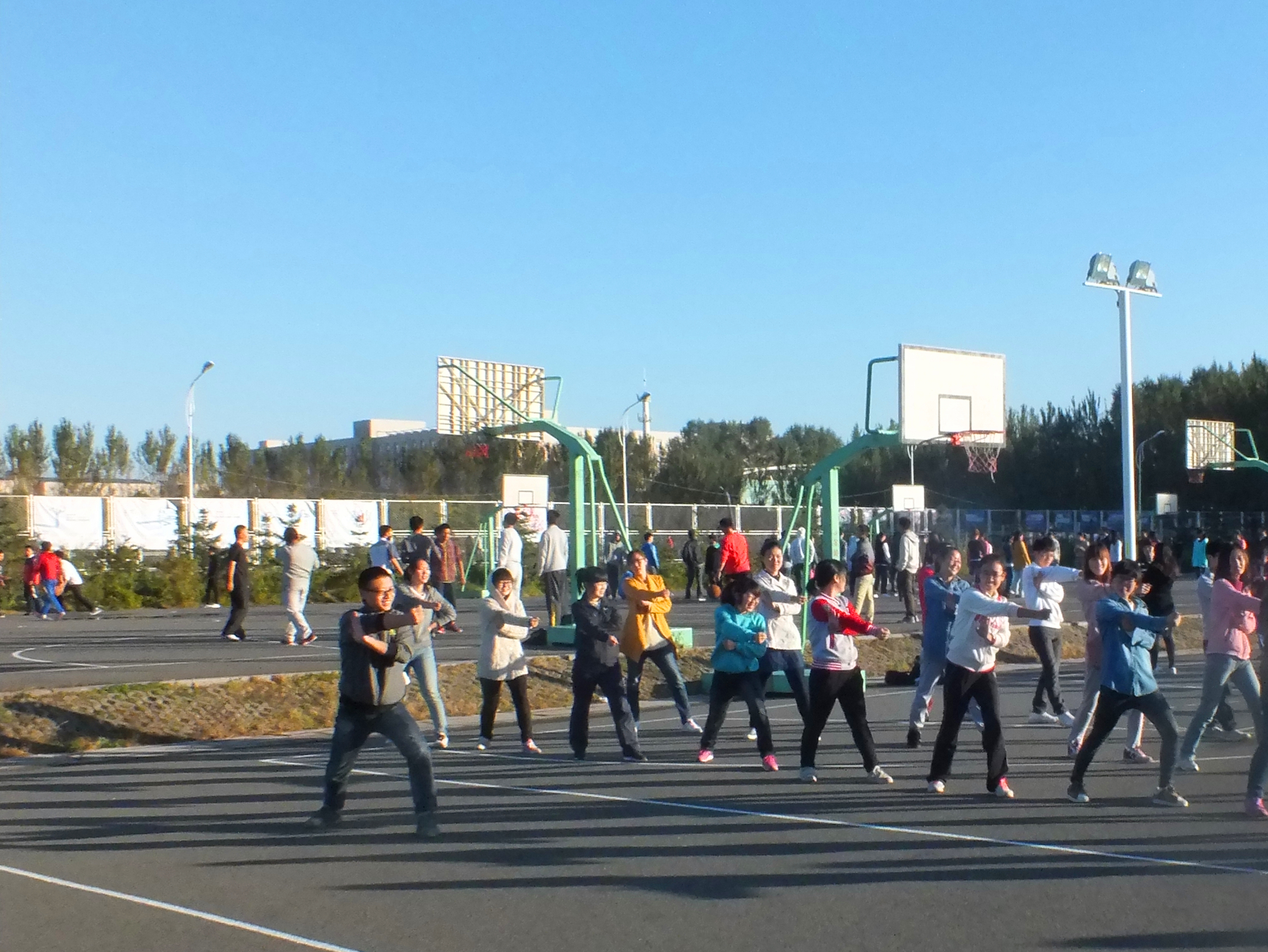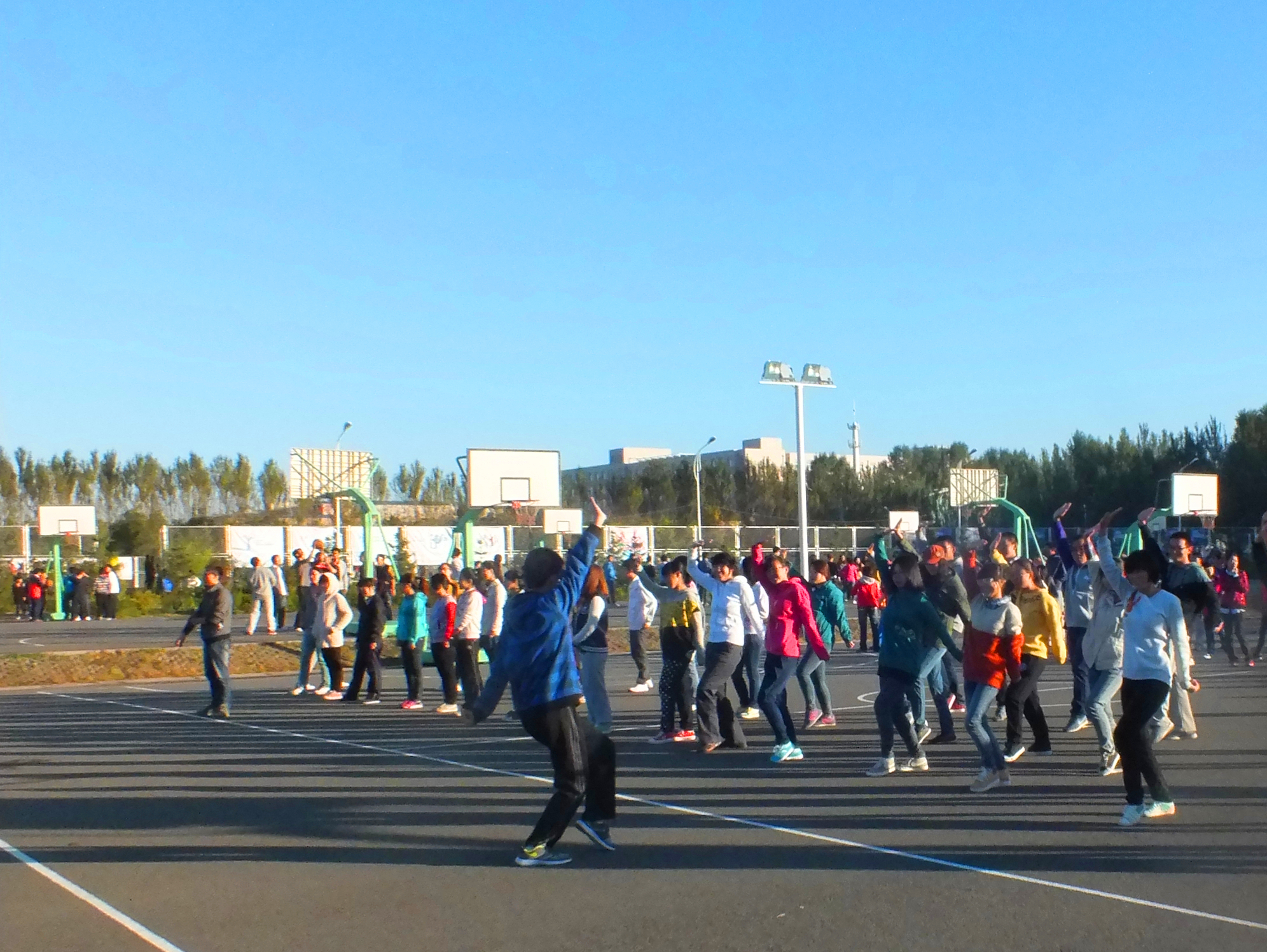2013-2014学年第一学期首次集体早操健身活动在中心校区田径场和篮球场拉开序幕。本次活动的开展旨在贯彻落实《吉林省教育厅关于加强学校体育工作实施意见的通知》和《麻豆