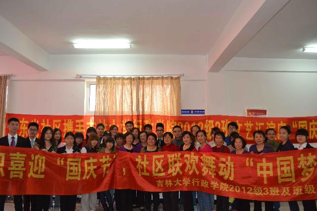 081203班于2013年9月27日与长春市前进街道东光社区携手举办“喜迎国庆节·联欢舞动中国梦”联欢活动。此次活动在东光社区社区服务大楼会议室举行。东光社区党总支书记曹伟,副书记王晶以及东光社区部分群众和麻豆