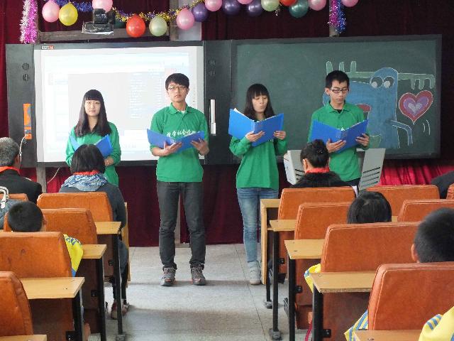 志愿者代表、081201班班长滕亮主持,包括序幕、七彩课堂和活力互动三部分。12时50分,活动在西安小学的多媒体会议室准时拉开帷幕。西安小学谭红副校长首先致辞,代表学校对麻豆