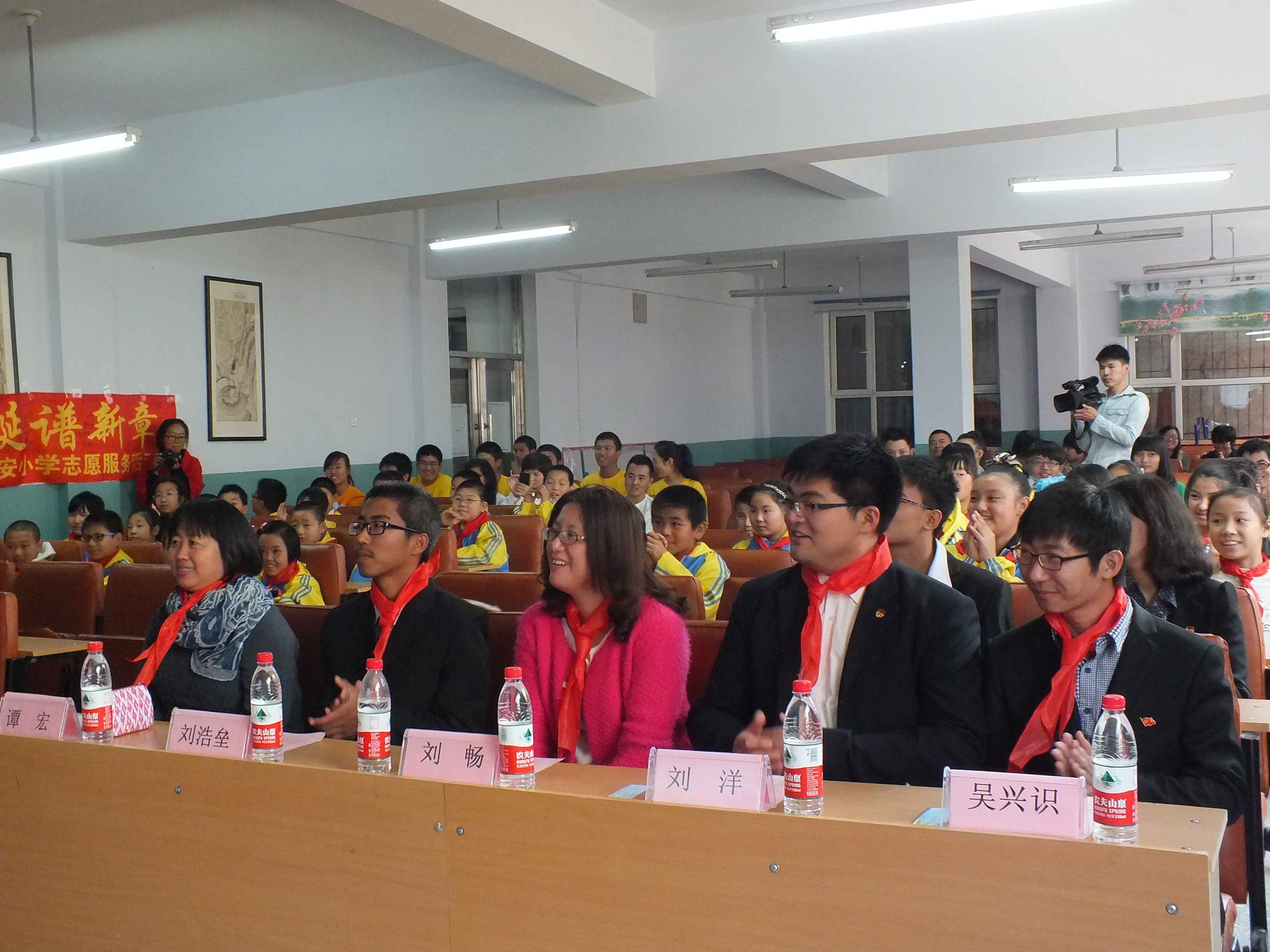 本科生辅导员刘洋对本次活动的组织目的和展开形式作出介绍,并在发言中强调社会志愿服务活动对志愿者来说是获得实践经验、彰显自身价值和提高人文素养的重要途径。志愿服务精神更是一名有理想有担当的优秀大学生所应具备的优秀品质。他希望在场的行政学子谨记“天下为公”的院训,与其他志愿者一起积极投身志愿服务活动,在志愿服务活动中服务社会、完善自我。在热烈而持久的掌声中,应邀嘉宾向西安小学的学生赠送了礼物,小学生也为每一位出席的领导佩戴了红领巾。