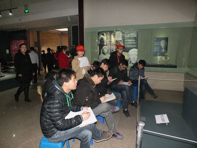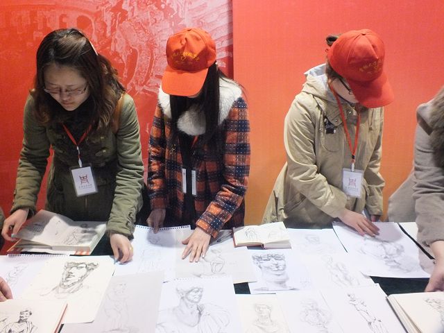 上午9时许,在长春大学特教学院手语教师杨帆的带领下,41名聋哑学生分别走进吉林省博物院的《辉煌时代——古罗马帝国文物展》展区和《瓯骆风 八桂情——广西民族历史文化展》展区,来自千年之前异域的神秘文物、充满民族风情的艺术品让聋哑同学感受到了艺术的熏陶。在老师的建议下,同学们选择好自己喜爱的雕塑模型,架起画板、拿好画笔,开始了现场临摹。临摹过程中,有的志愿者尝试着与聋哑同学进行简单的交流与沟通,为他们素描提供可行的建议;有的则耐心的为聋哑学生指引方向,提供座椅等物品;有的则维护现场秩序,保障本次活动的顺利进行,同时保护文物安全。