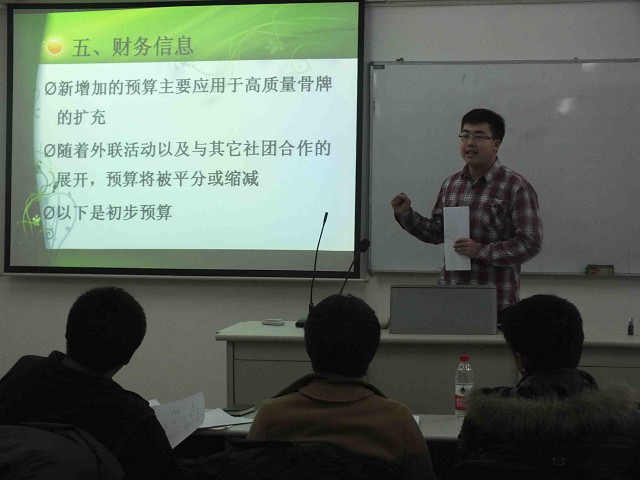 团委社团部于中心校区逸夫教学楼MPA教室成功举办了2013年“每团一品”活动院内申报答辩会。麻豆