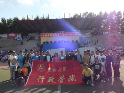 的队伍正在其中。只见他们身穿正装,喊着嘹亮的口号向主席台致敬,“天下为公,志在大同,文韬武略,问鼎苍穹”简短有力的口号响彻赛场,激奋人心。本届运动会麻豆