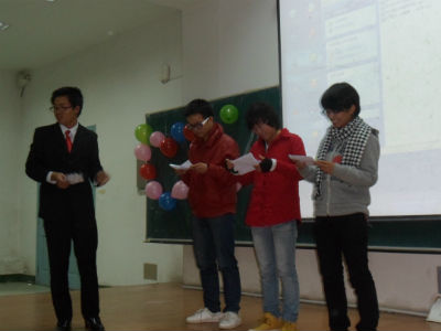 团委副书记赵昊骏,团委社团部部长牟明标,院学生会主席叶博及院辅导员助理。本次“家乡秀”由社长王晓东主持,海化社全体成员及11级部分同学参加了本次比赛。