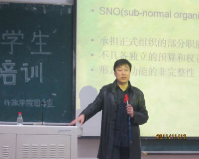 学生干部培训理论讲座第二场于三教二阶拉开了帷幕。本次培训的主讲嘉宾为国际政治系副教授、硕士生导师于海洋老师。院团委全体成员及11级全体学生干部参加了此次培训。