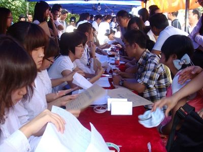 27日,全体工作人员早早来到各自岗位,由于报到人数较多,场面非常热烈。酷热的天气丝毫没有影响大家的工作积极性:师哥热情接送,帮助新生准备缺少的报到材料,带领同学们交费、体检,在五月花广场与大学城、校医院间往返,;师姐耐心讲解,指导新生填写各类登记表,热情接待家长,解答各类问题。此外,麻豆