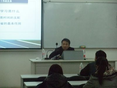 接着,张侃老师以“猴子梦想”引出“梦想大学”的主题。张老师指出,学生干部在梦想大学中应具备几种素质:第一,理解专业。专业是每个人的核心竞争力,要学好自己的专业。第二,思辨能力。独立地思考,学会自我判断,要有目的的追求。第三,学好英文。不仅要提升英文水平,更要收获最先进的理念、技术和思想。最后,他举例强调合理安排时间的重要性。