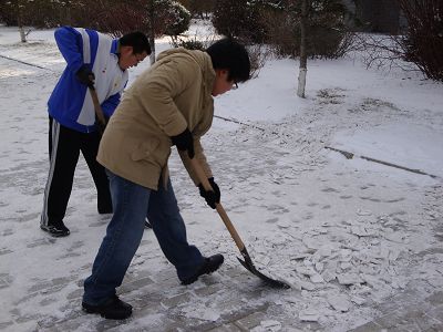 08级本科生利用午休时间在辅导员老师的带领下进行清雪。本次清雪任务由各班班委具体负责,分担区为莘子园食堂门前以及南苑三舍、四舍中间的空地。本次清雪区域面积大,时间紧、任务重,但大一的同学们一如既往地认真对待,同学们不畏严寒,积极地参与清雪活动。经过全体同学的不懈努力,本次清雪任务在一片热火朝天的气氛中提前完成。