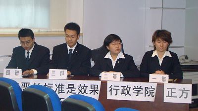 比赛中,双方队员唇枪舌战,我方思路敏捷,就这一辩题展开了紧张而激烈的争辩,从中展现了我方鲜明的观点和立场,我方辩手深厚的文学底蕴,严密的逻辑思维和较高的个人素养得到了评委老师和场下观众的一致赞扬.在首场比赛胜利的鼓舞下,相信行政学子会继续努力,再创佳绩。