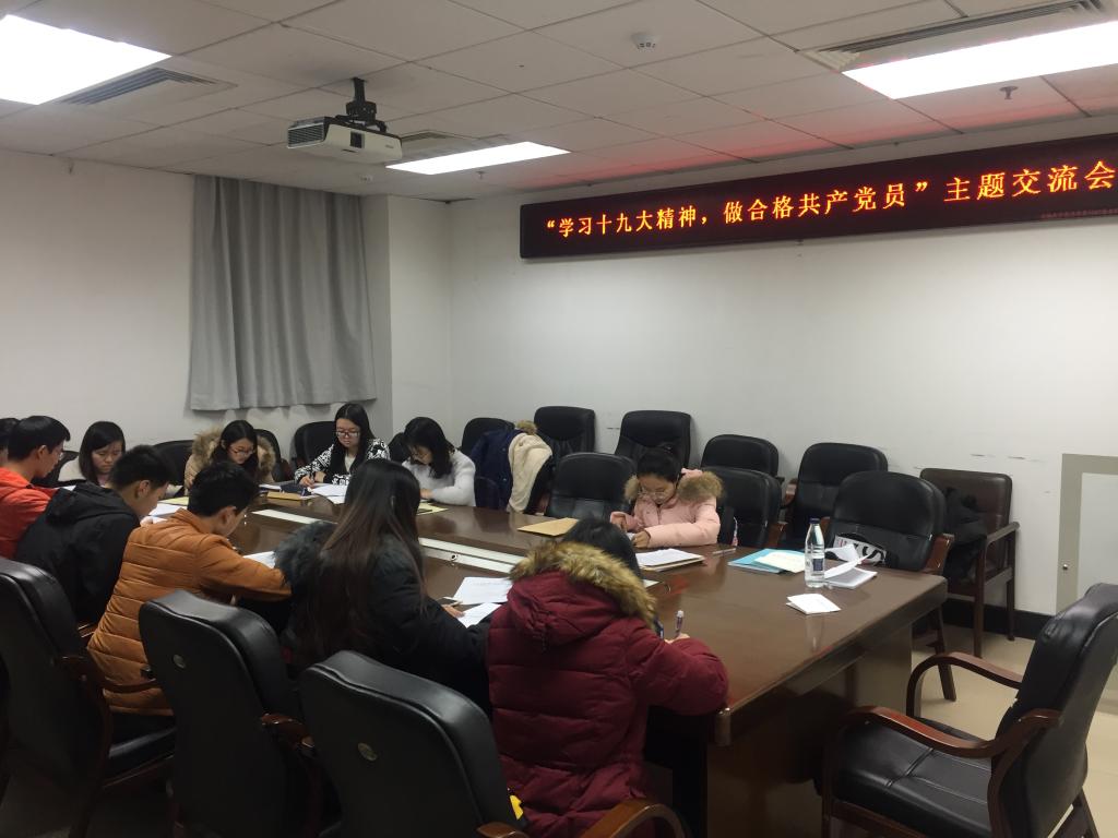 本科生“学习十九大精神,做合格共产党员”主题交流会在中心校区东荣大厦1202会议室顺利召开。本科生第一党支部全体党员、预备党员,部分入党积极分子参加了本次主题交流会。