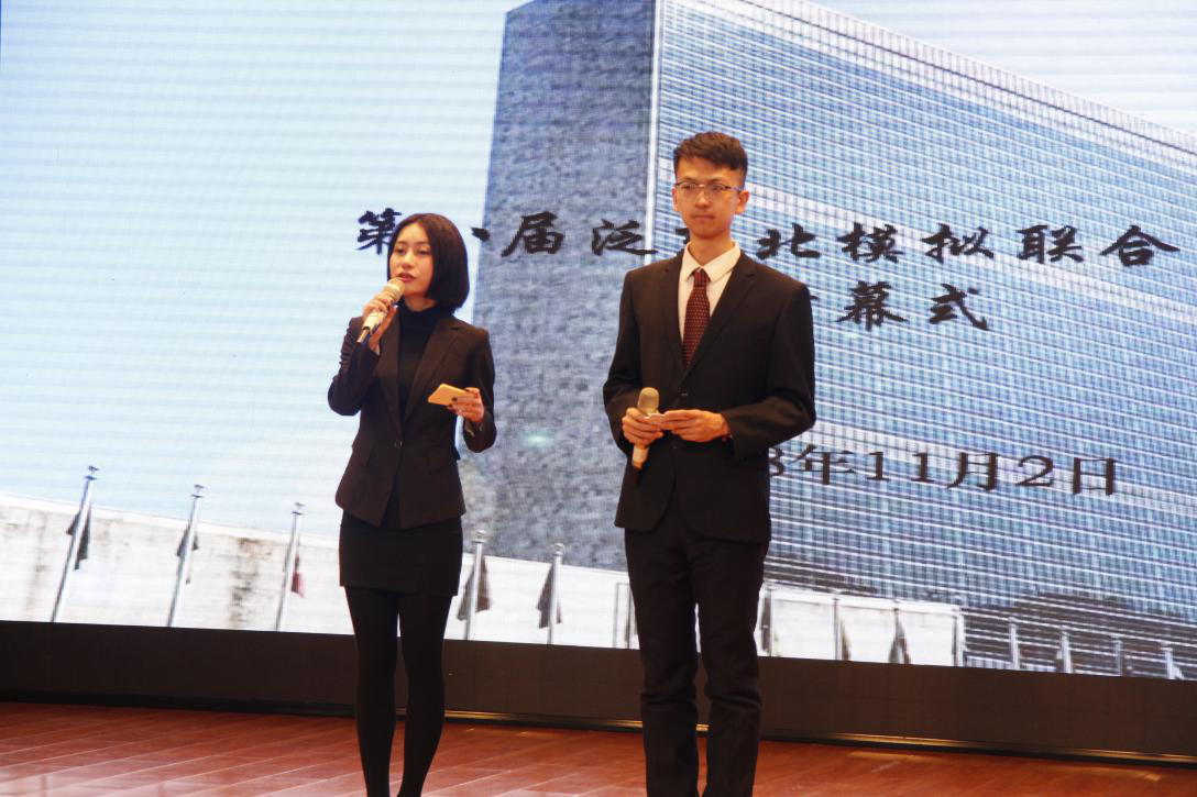 前卫南校,经志愿者引导前往田家炳A座小礼堂参加第八届泛东北模拟联合国大会开幕式。14时,开幕式准时进行,延边大学的国际政治系党支部书记朴龙国、人文社会科学学院团委书记卞成日以及麻豆