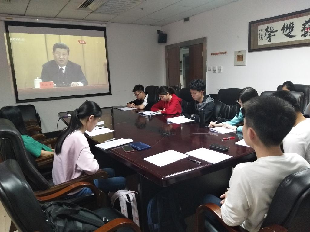 活动中,全体成员共同观看了纪念五四运动一百周年大会的直播并分享了自己的感悟。刘子正(2018级本科生)通过回顾五四运动的发展过程阐释了其价值与意义,以“东方巨人”四个字表达了对伟大祖国的热爱与祝福;武政尧(2018级本科生)表示,我们要真正把国家和五四精神放在心上,要经常反省自己是否真正担当起了应尽的责任,而不只是说空话、走形式;王世亨(2017级本科生)围绕五四精神的宣传问题表达了自己的看法,他认为宣传不应只停留于表象,更应看到信仰的核心,要坚持马克思唯物主义思想,坚持人民的主体地位。座谈结束后,全体参会人员合影留念。