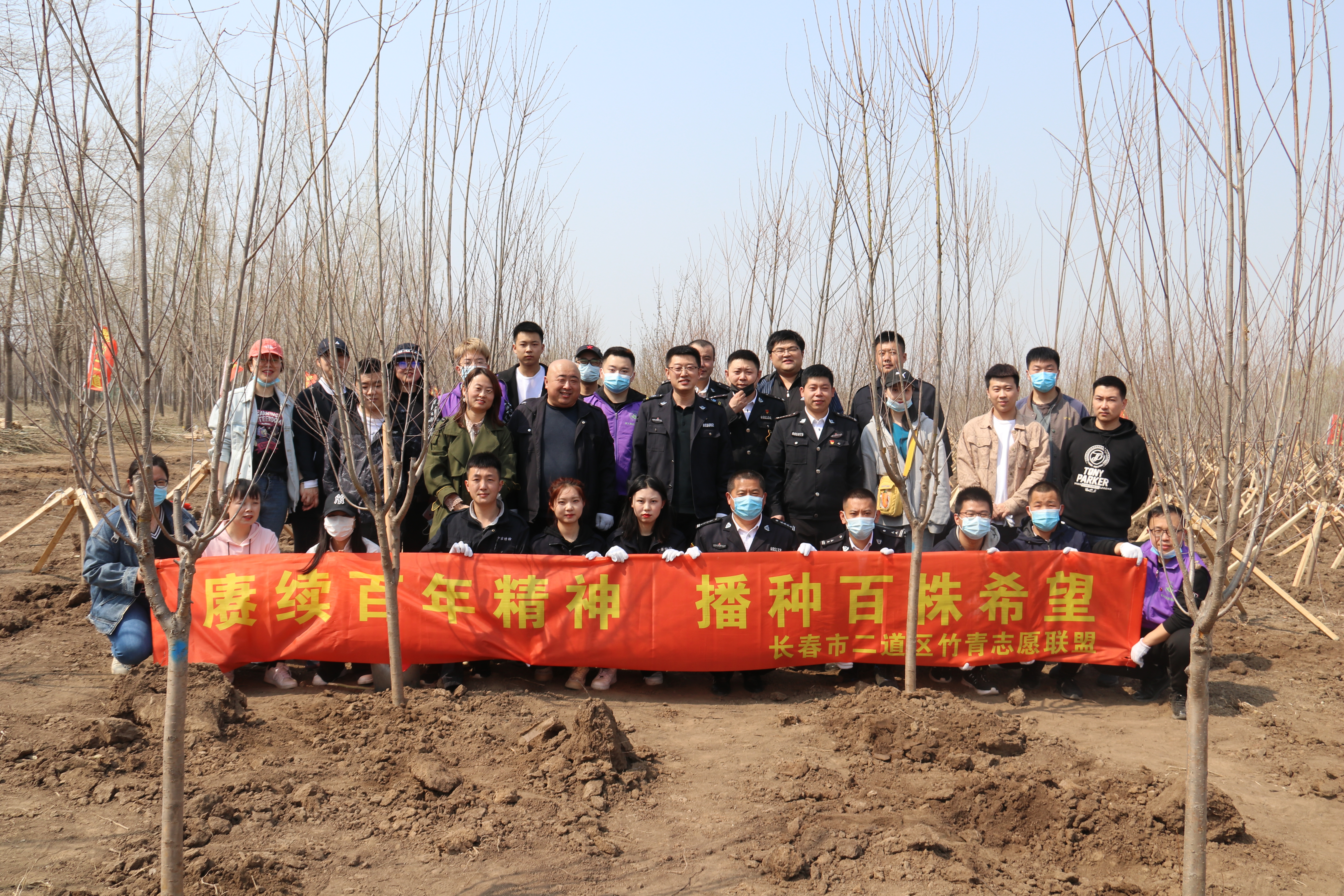 志愿者师生参加了长春市二道区东站街道十委社区竹青志愿联盟“庚续百年精神,播种百株希望”主题植树活动。位于二道区英俊镇的植树现场一派热火朝天的繁忙景象。竹青志愿联盟的志愿者们一起挥锹铲土、扶苗围堰、拎桶浇灌,栽下一棵棵树苗、播种一个个希望。时值庆祝中国共产党成立100周年,全党开展党史学习教育之际,麻豆