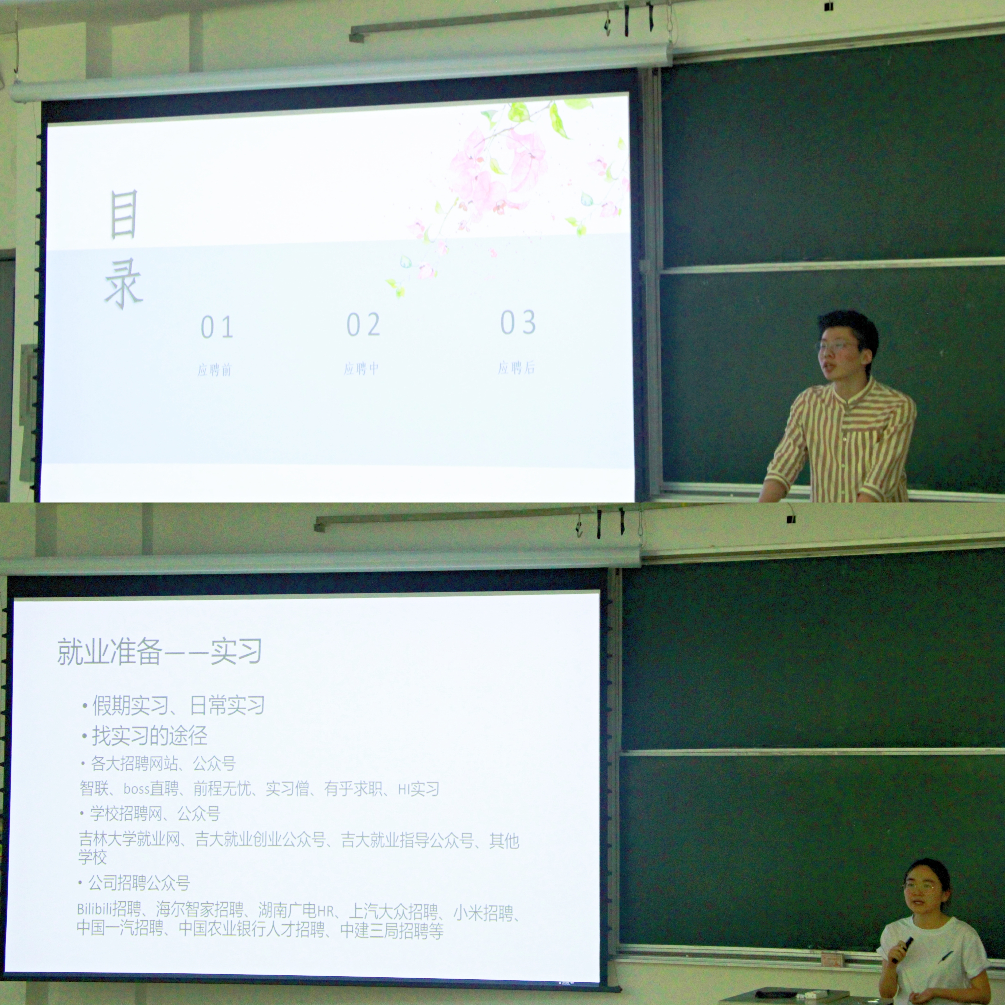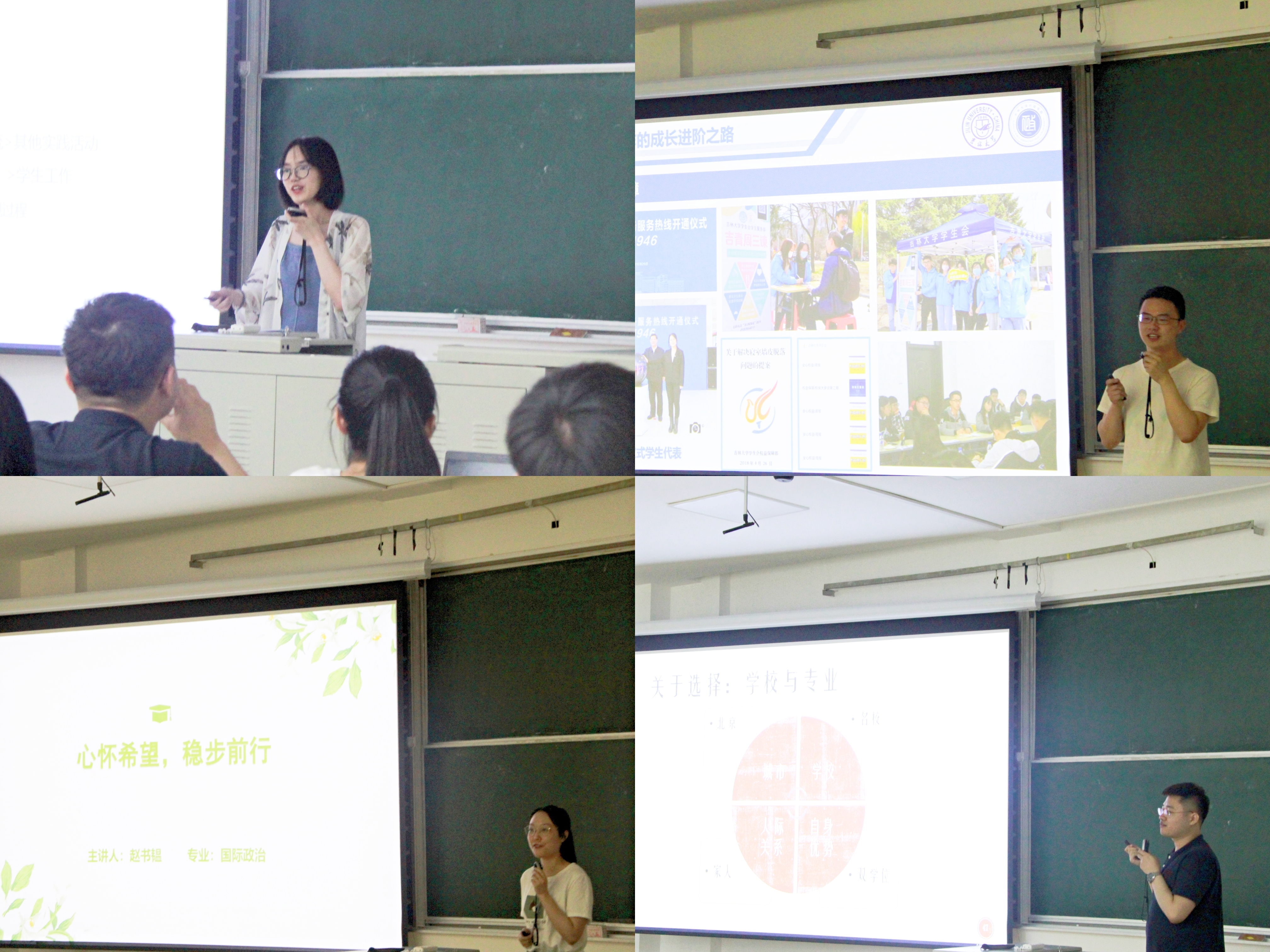 之后,“海外追梦组”刘劼涵同学介绍了一些本专业相关的海外项目及申请经验。“基层建功组”崔贺同学详细介绍了选调生相关政策与考录流程。吕彦忠同学介绍了报考选调生所需的笔试面试相关材料与查找途径。“职场逐梦组”刘智宇同学介绍了应聘前、中、后不同阶段所要做的准备。高鹏鸿同学分享了自己在简历制作、笔试面试等方面的有益经验。