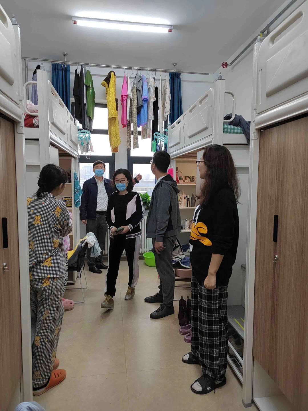 学院领导班子成员还走访了文苑二公寓、文苑三公寓,深入新生宿舍看望新生、了解情况,并转达学校领导的关怀与问候。马景惠、史慕华等与新生们进行了亲切交流,认真考察公寓生活环境,倾听同学们对人居条件的反馈和呼声,同时教导新生要爱惜宿舍设施,珍视室友情谊,遵守安全卫生制度,养成良好生活习惯,把宿舍建成学习氛围浓郁、利于身心健康、充满欢声笑语的小天地。