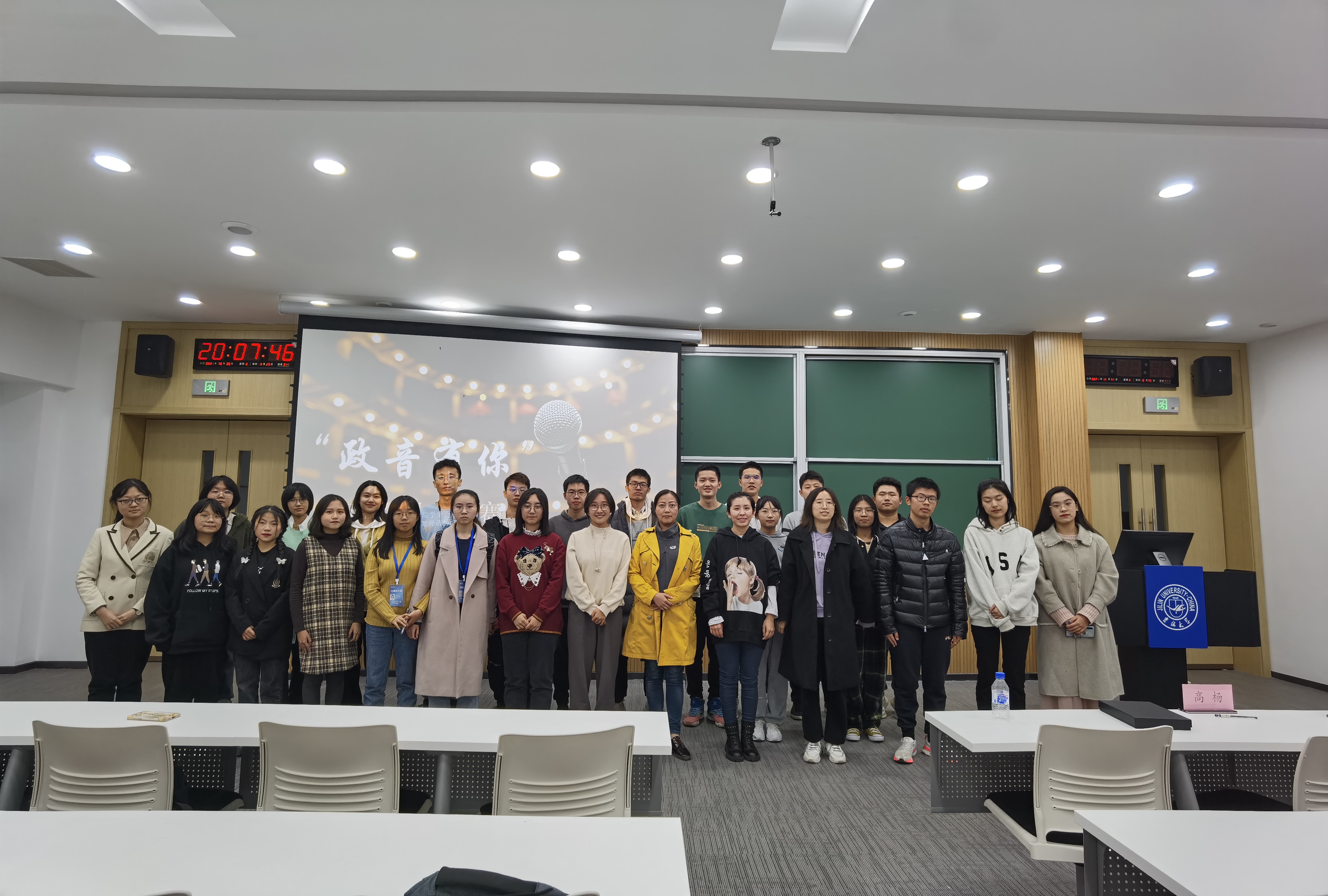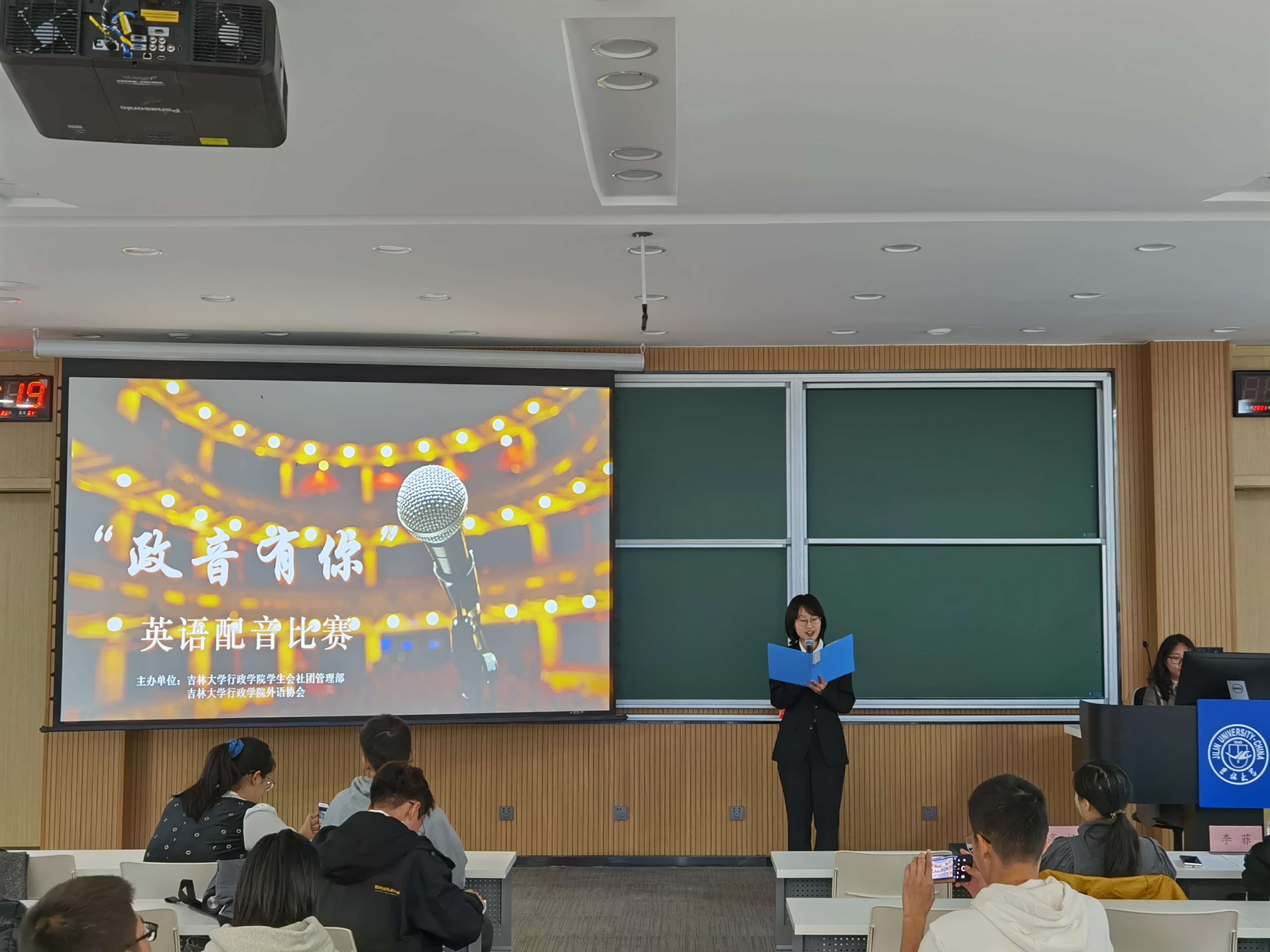 外语协会在逸夫四阶举办了“政音有你”英语配音比赛。公共外语教育学院教师高杨、李菲、麻豆