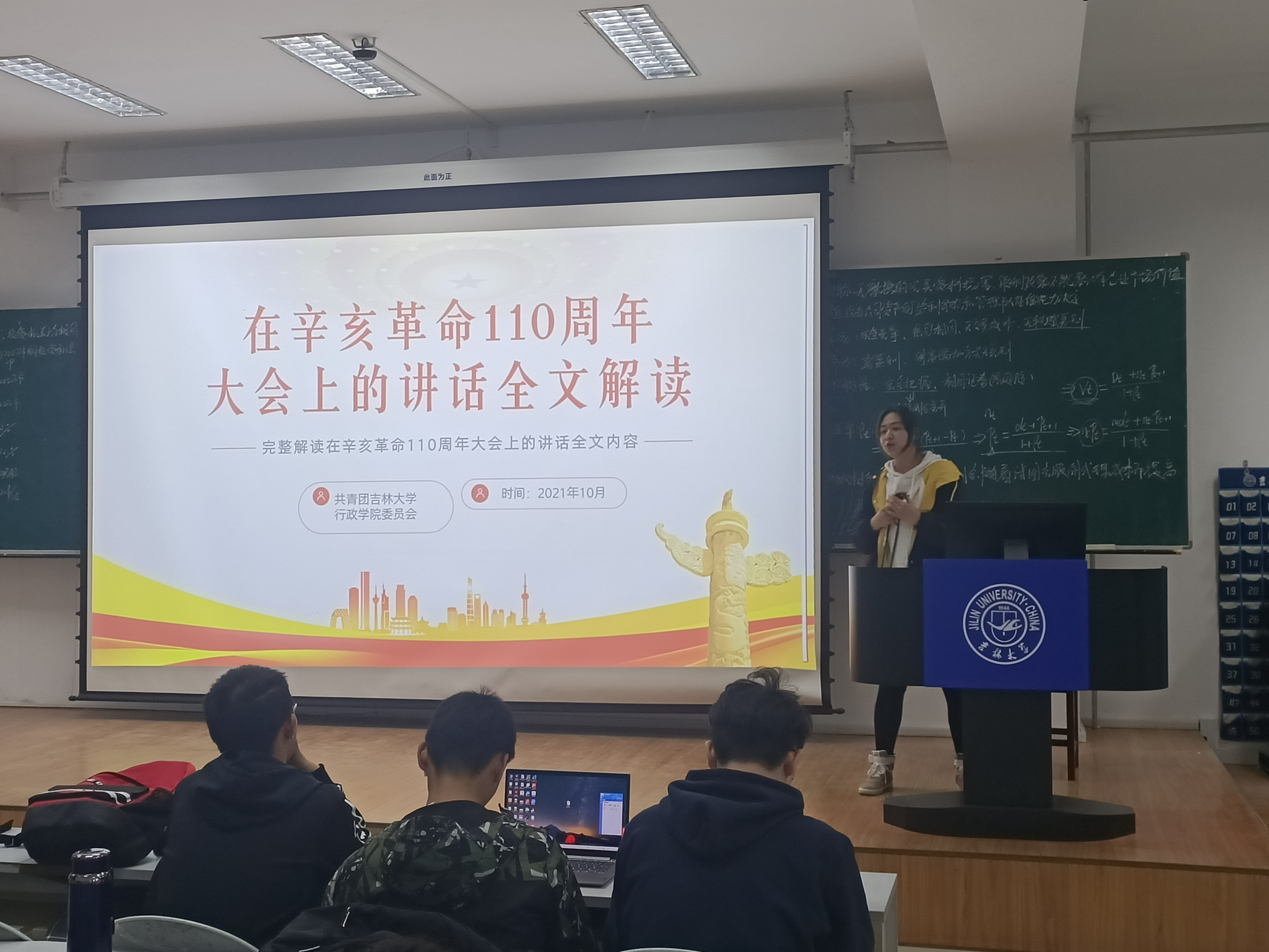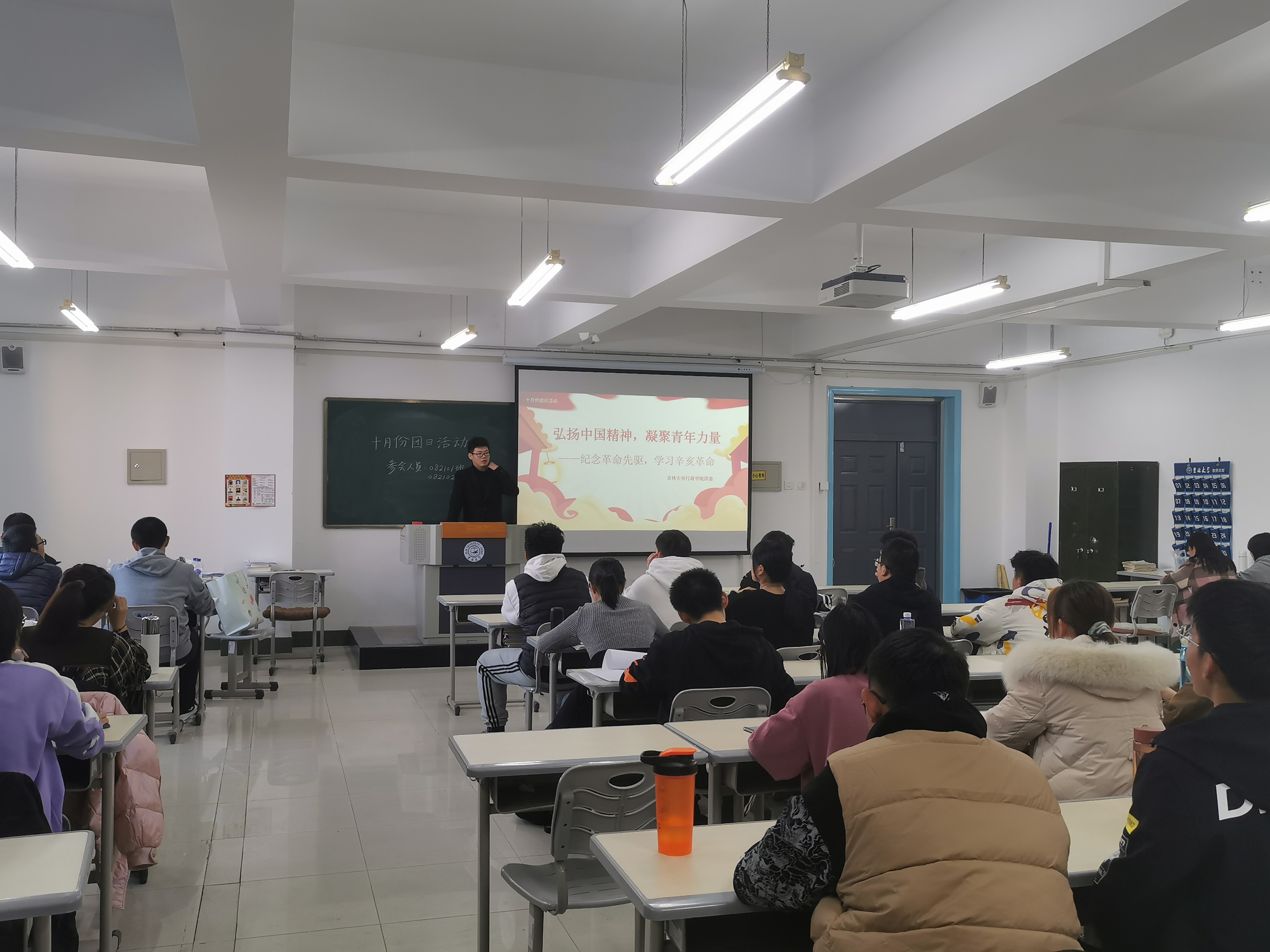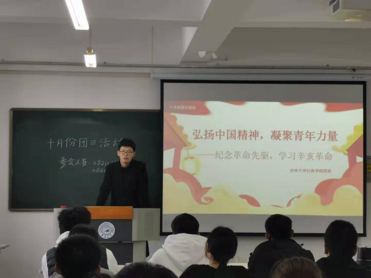 各班此次团日活动分材料学习,交流感想两个环节进行。活动伊始,各班辅导员助理向各班团员讲解了学习材料——“在辛亥革命110周年大会上的讲话”,同时分享了辛亥革命110周年大会上的讲话金句,并从辛亥革命发生的深刻社会历史背景入手,指明辛亥革命是近代以来中国社会矛盾激化和中国人民斗争的必然结果;强调了中国共产党人对孙中山先生的遗愿继承,最终实现中华民族的伟大复兴的目标;启示我们在新征程上紧紧围绕党的领导,坚持和发展社会主义不动摇。