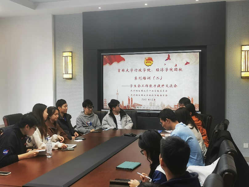 学生会成员与经济学院学生会成员于12月2日上午在东荣大厦B区304会议室召开经验分享交流会,共同讨论学生会各项工作开展情况与协作方式。