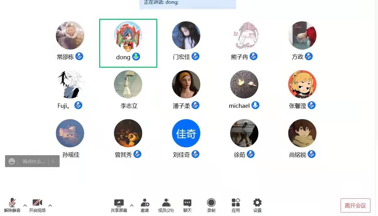 15日上午,在2020级五班班会上,班主任王庆华老师、于君博老师通过视频会议与全体同学见面,了解同学们居寝学习期间的困惑和需求。见到彼此熟悉的面孔。班会伊始,庆华老师问候了全班同学的近况,景冉、张振华同学代表班级同学从个人生活学习情况出发,向老师们汇报了当前的居寝情况,两位同学都认为,当前隔离情况虽对生活有所影响,但是学习效果仍能保证。随后,老师们从自身线上授课的角度出发,与同学们交流线上学习的需求和可改进之处。最后,君博老师进行总结并勉励同学们尽快适应线上学习和居寝生活,在隔离期间利用好时间,勤加思考,为未来进行提前规划。